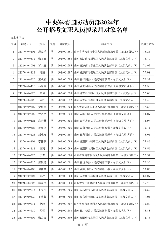 原文標題:中央軍委國防動員部2024年公開招考文職人員擬錄用對象名單