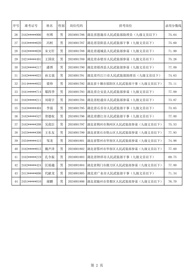 2025年武裝部文職人員擬錄用名單(含上岸分?jǐn)?shù)線) 2025-10-09