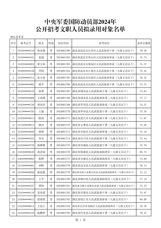 原文標(biāo)題:中央軍委國防動員部2024年公開招考文職人員擬錄用對象名單