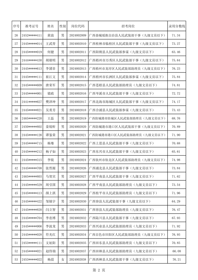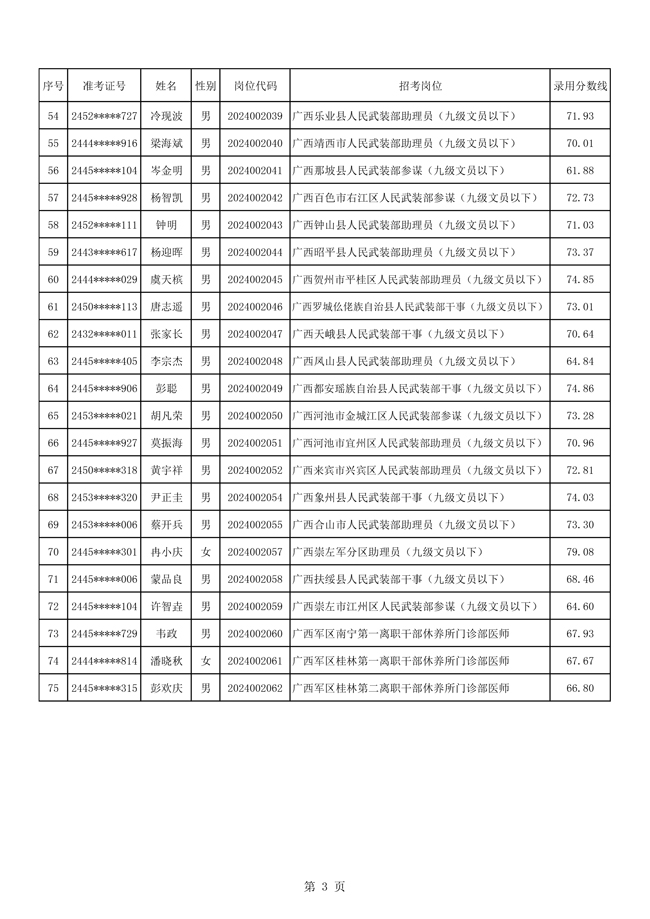 2025年武裝部文職人員擬錄用名單(含上岸分?jǐn)?shù)線) 2025-10-09
