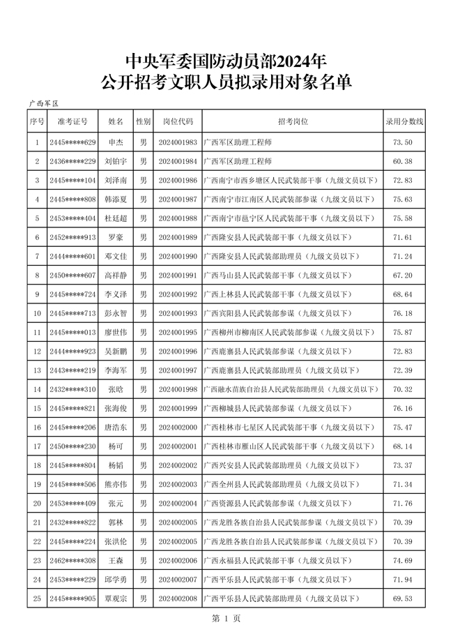 原文標(biāo)題:中央軍委國防動員部2024年公開招考文職人員擬錄用對象名單