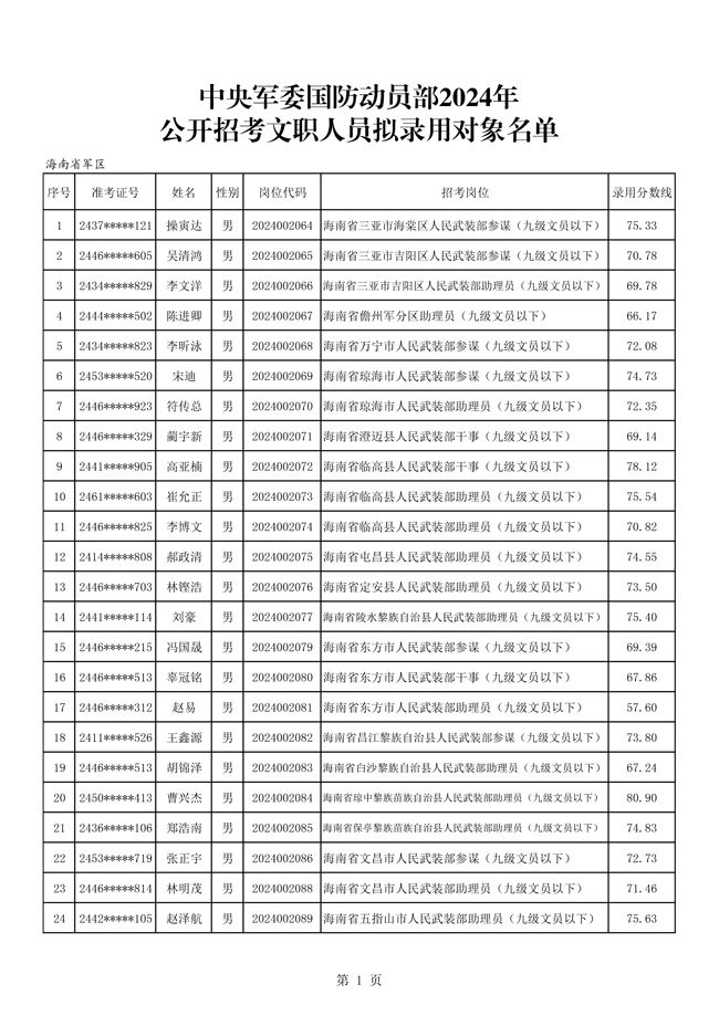 原文標(biāo)題:中央軍委國防動員部2024年公開招考文職人員擬錄用對象名單