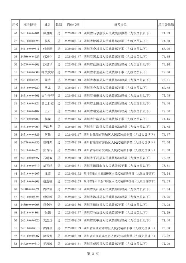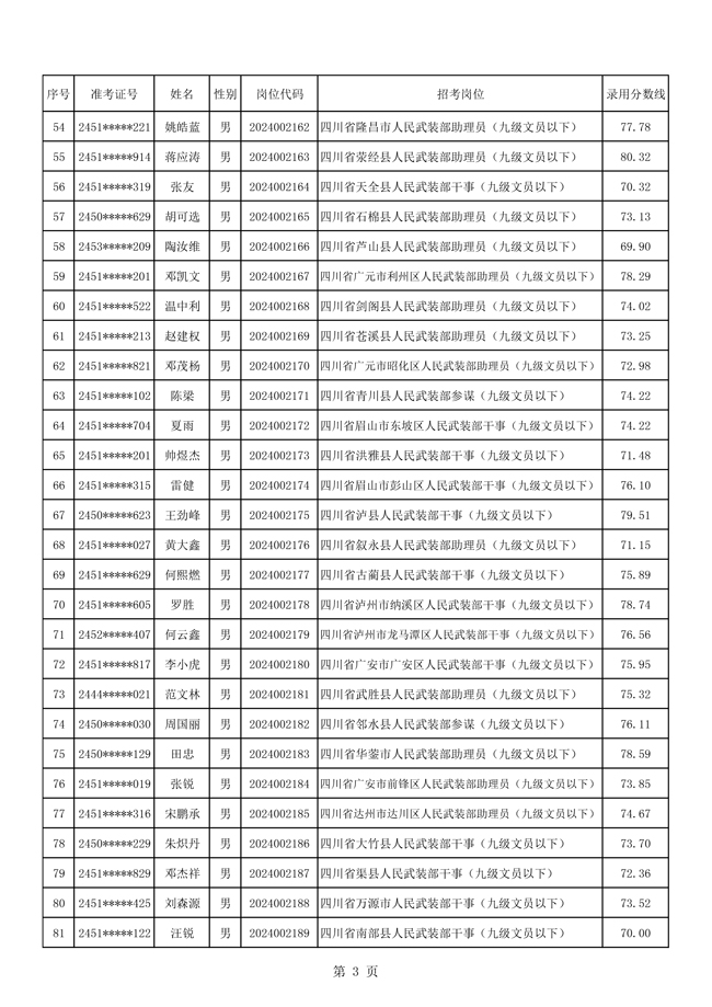 2025年武裝部文職人員擬錄用名單(含上岸分?jǐn)?shù)線) 2025-10-09
