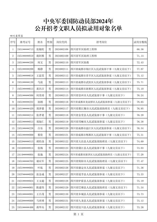 原文標(biāo)題:中央軍委國防動員部2024年公開招考文職人員擬錄用對象名單