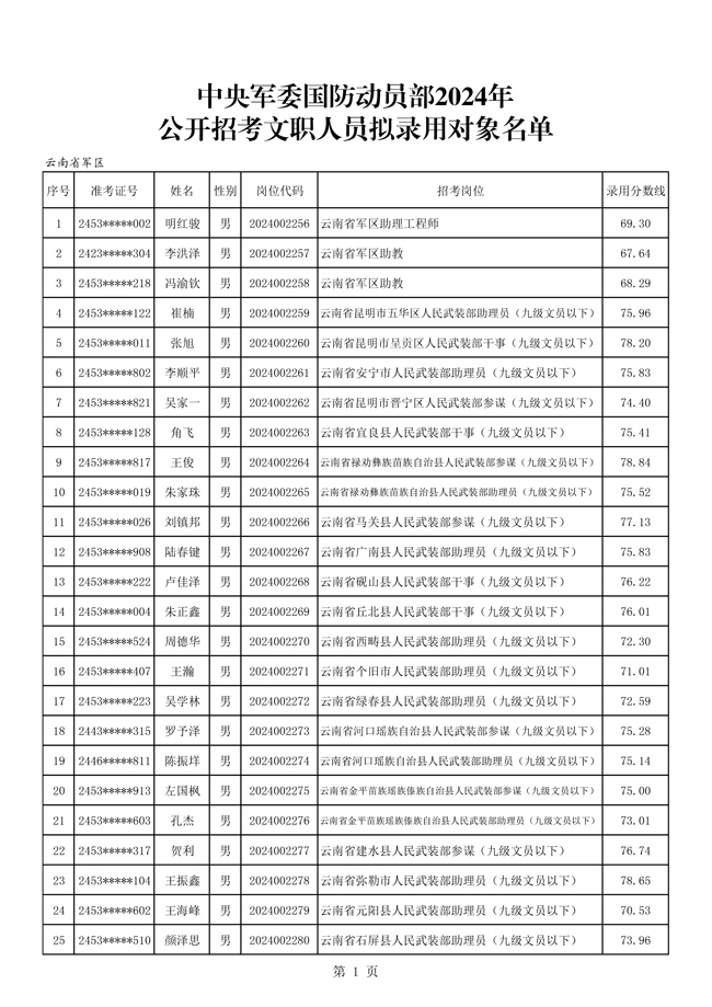 原文標(biāo)題:中央軍委國防動員部2024年公開招考文職人員擬錄用對象名單
