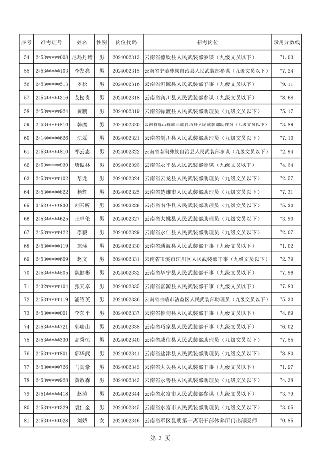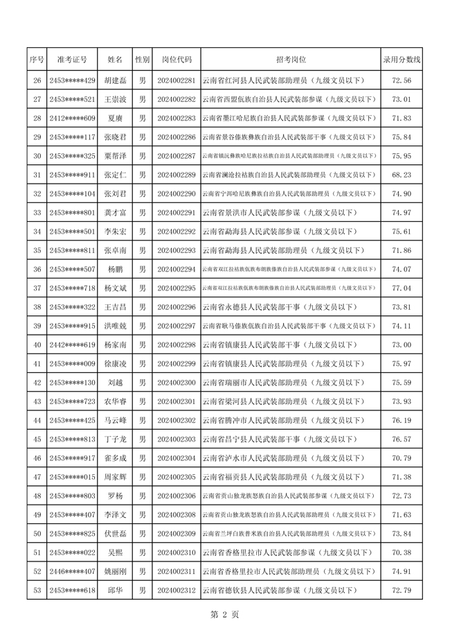 2025年武裝部文職人員擬錄用名單(含上岸分數(shù)線) 2025-10-09