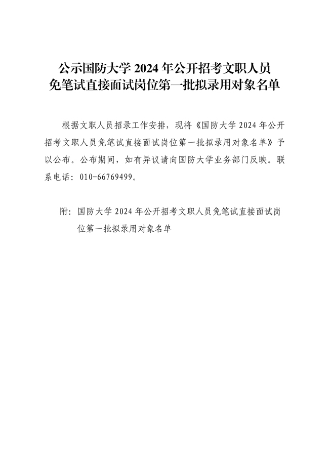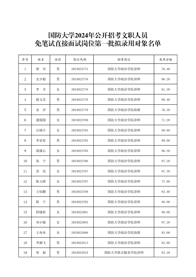 原文標(biāo)題:公示國防大學(xué)2024年公開招考文職人員免筆試直接面試崗位第一批擬錄用對(duì)象名單