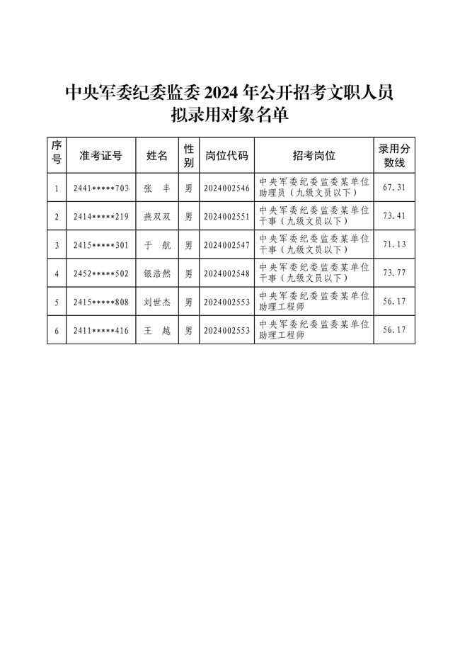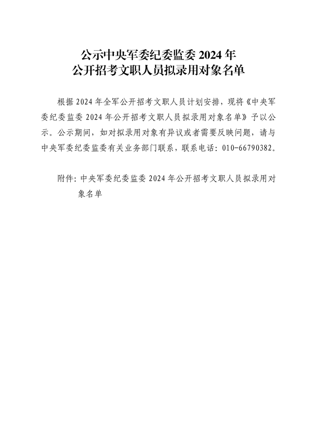 原文標(biāo)題:公示中央軍委紀(jì)委監(jiān)委2024年公開(kāi)招考文職人員擬錄用對(duì)象名單