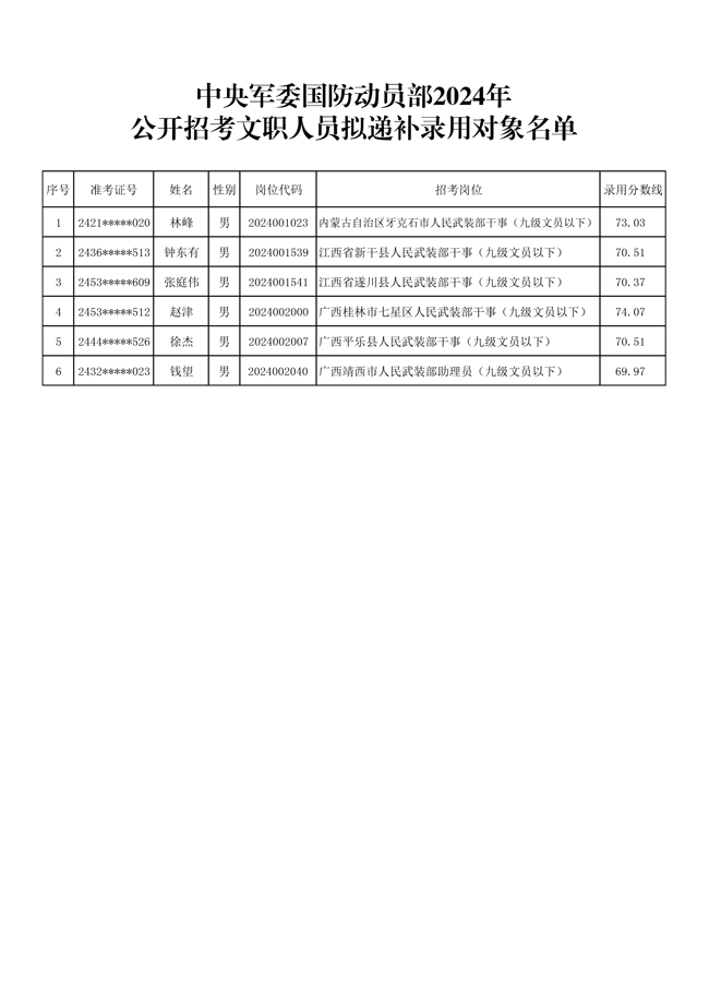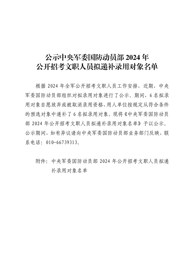 原文標(biāo)題:公示中央軍委國(guó)防動(dòng)員部2024年公開(kāi)招考文職人員擬遞補(bǔ)錄用對(duì)象名單