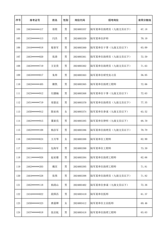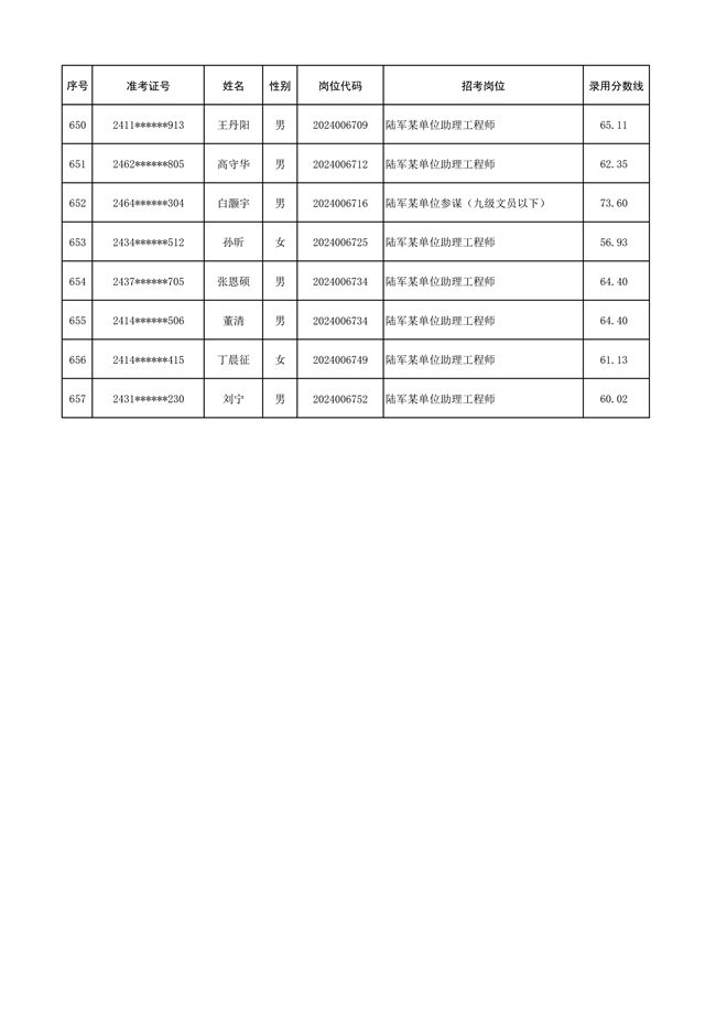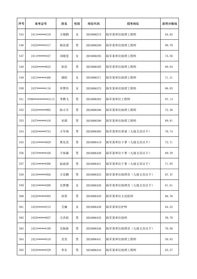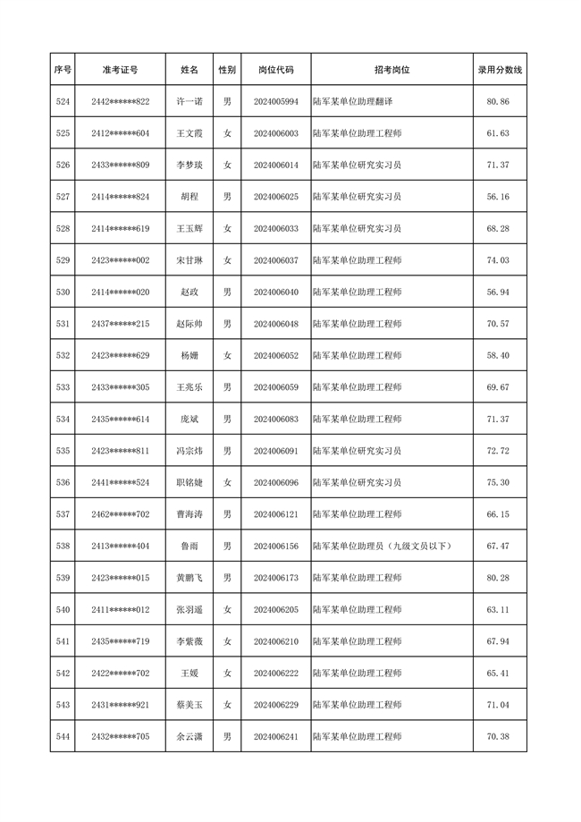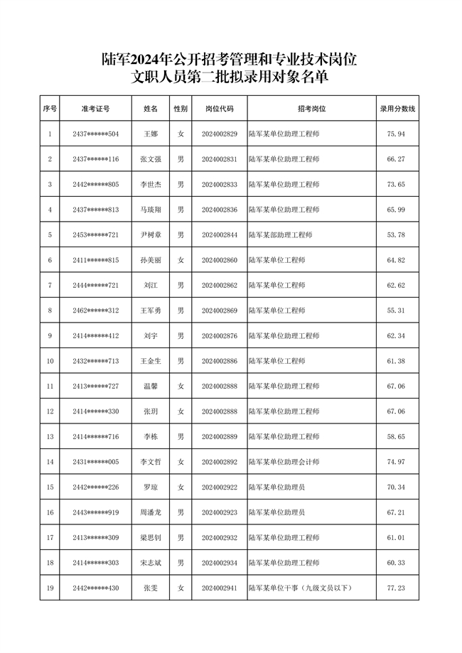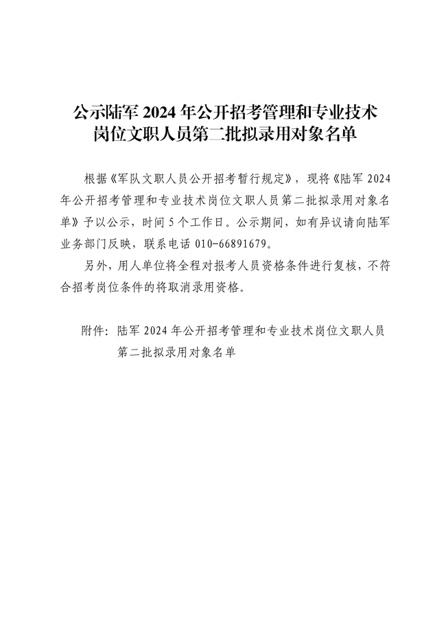 原文標(biāo)題:公示陸軍2024年公開招考管理和專業(yè)技術(shù)崗位文職人員第二批擬錄用對象名單