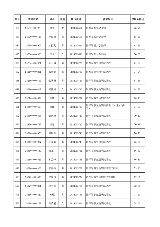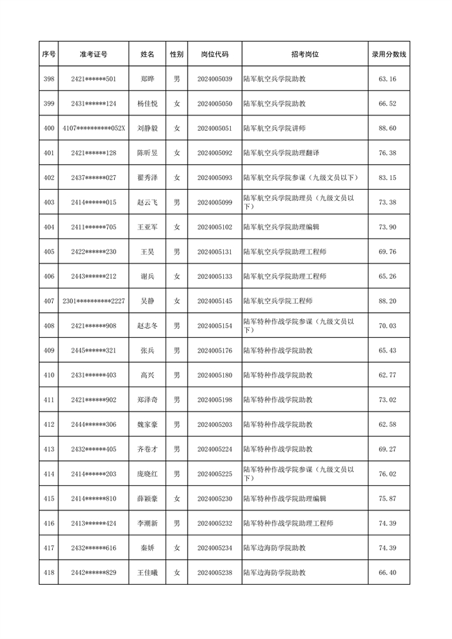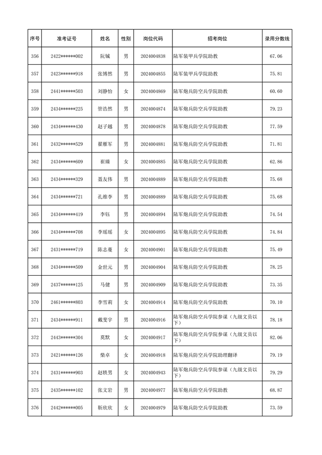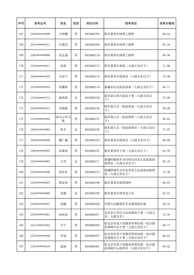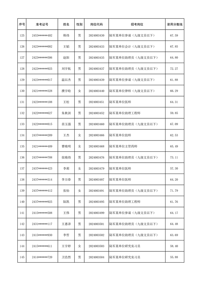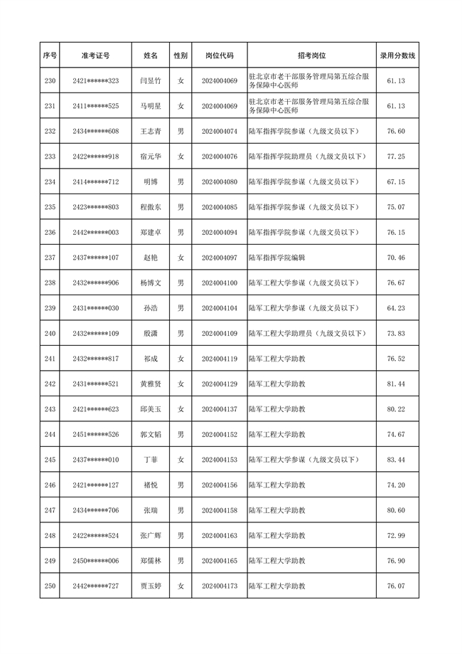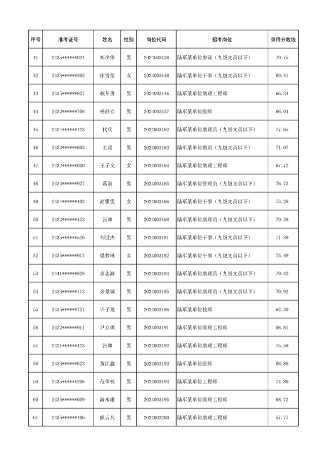 原文標(biāo)題:公示陸軍2024年公開招考管理和專業(yè)技術(shù)崗位文職人員第二批擬錄用對象名單