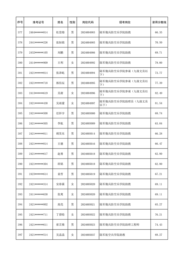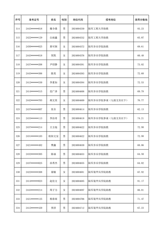 2025年武裝部文職人員擬錄用名單(含上岸分?jǐn)?shù)線) 2025-10-09