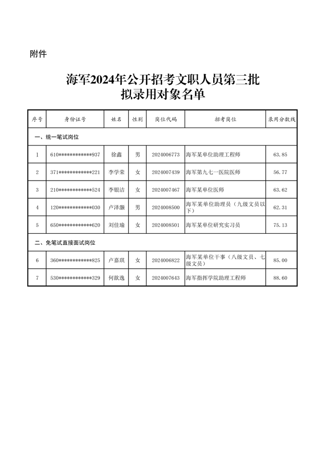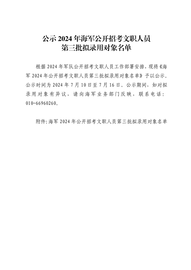 原文標(biāo)題:公示2024年海軍公開招考文職人員第三批擬錄用對(duì)象名單