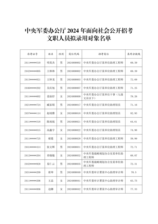 原文標(biāo)題:公示中央軍委辦公廳2024年面向社會(huì)公開(kāi)招考文職人員擬錄用對(duì)象名單