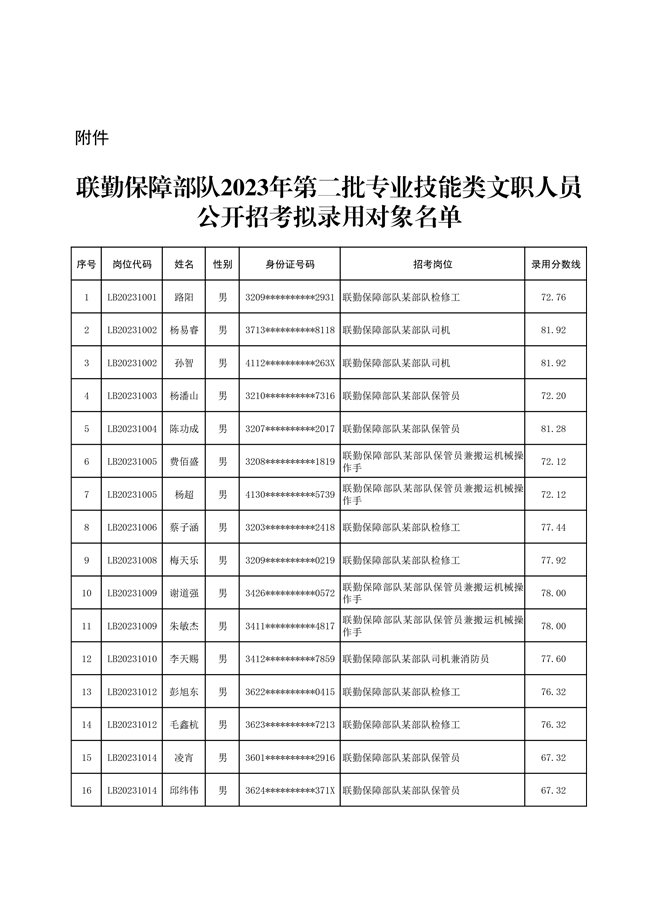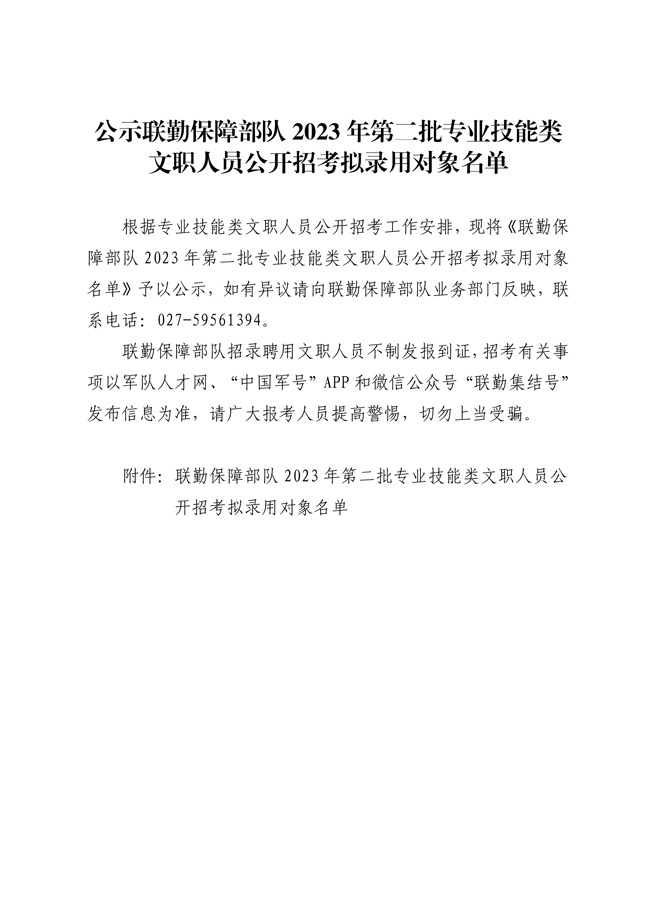原文標題:公示聯(lián)勤保障部隊2023年第二批專業(yè)技能類文職人員公開招考擬錄用對象名單