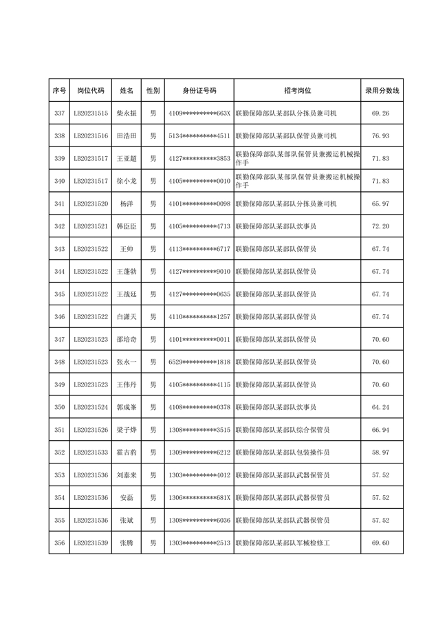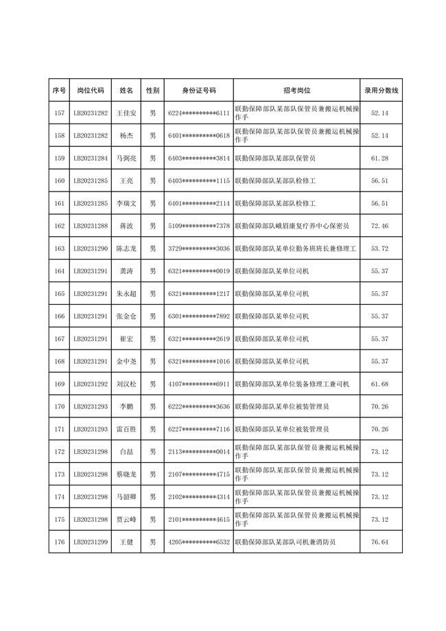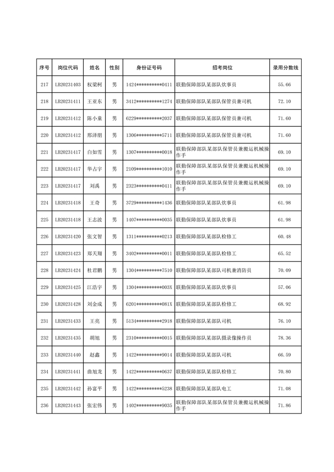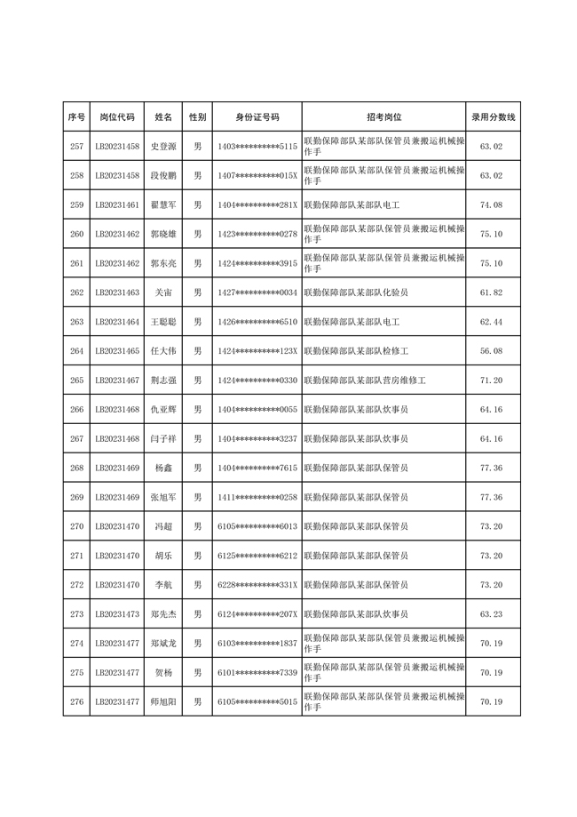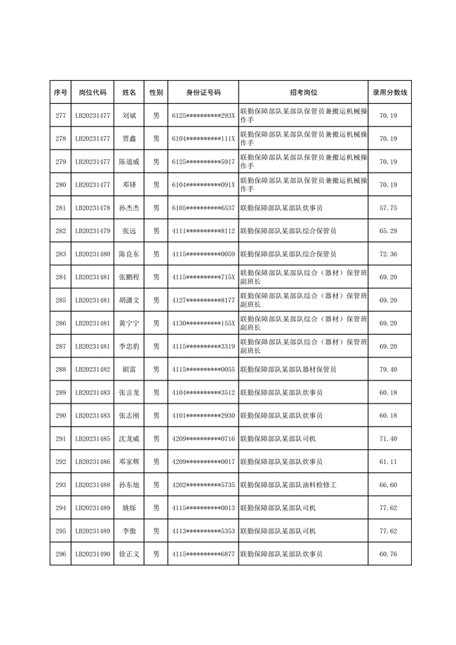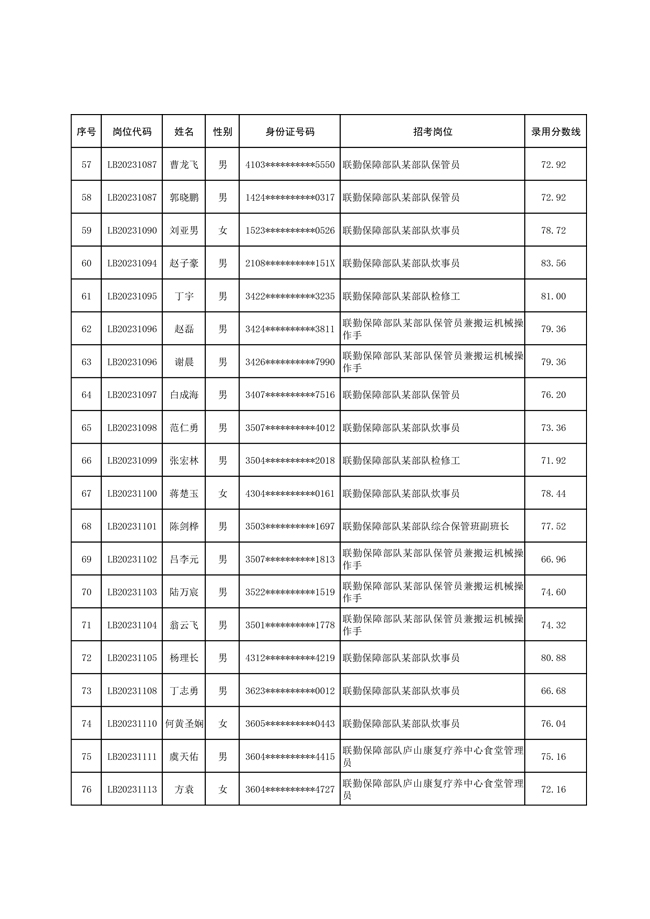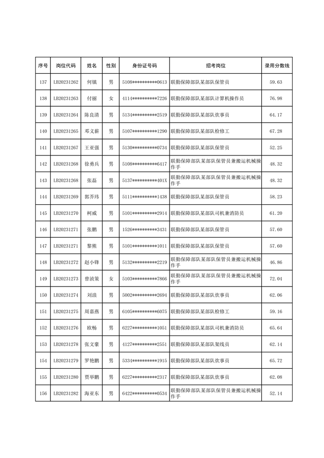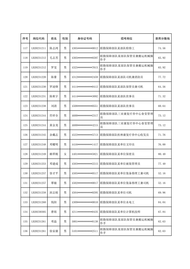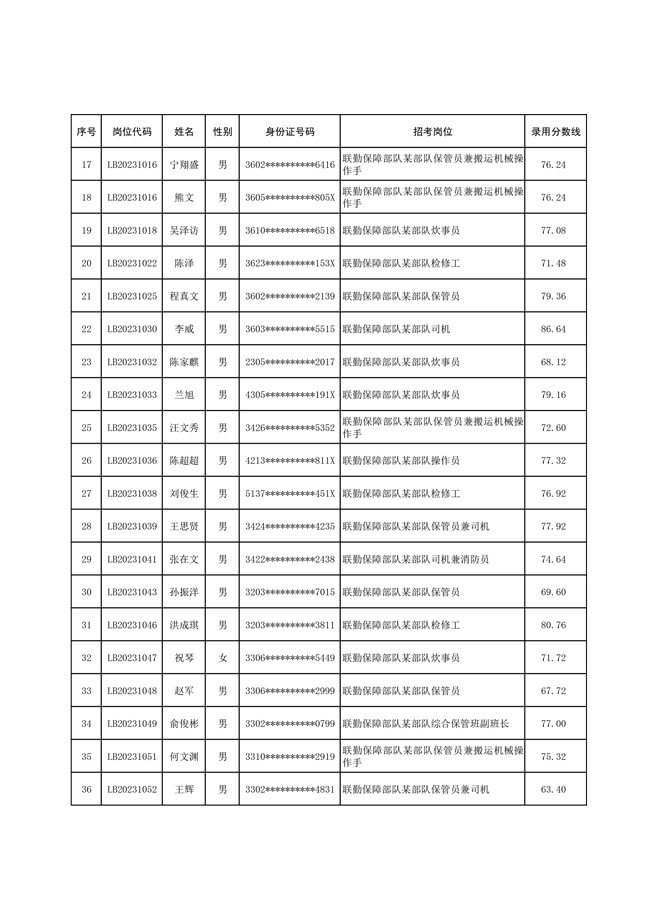 2025年武裝部文職人員擬錄用名單(含上岸分數(shù)線) 2025-10-09