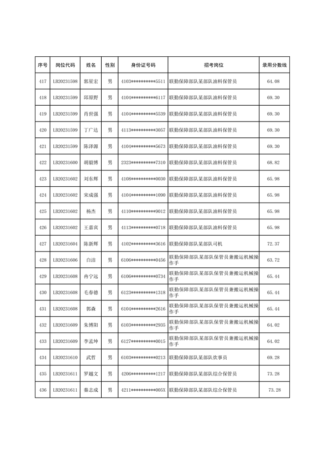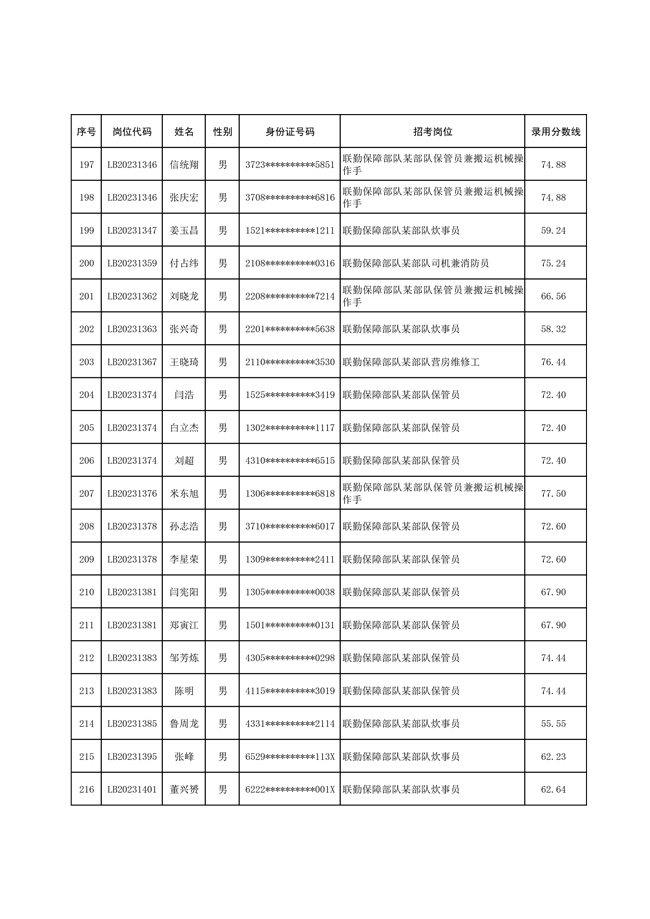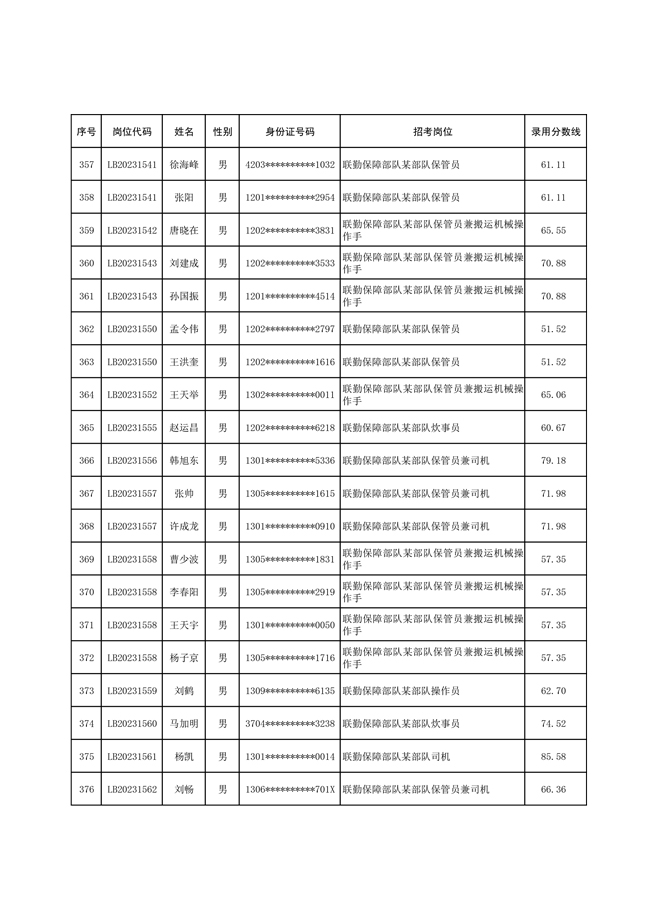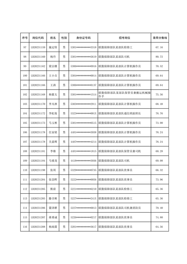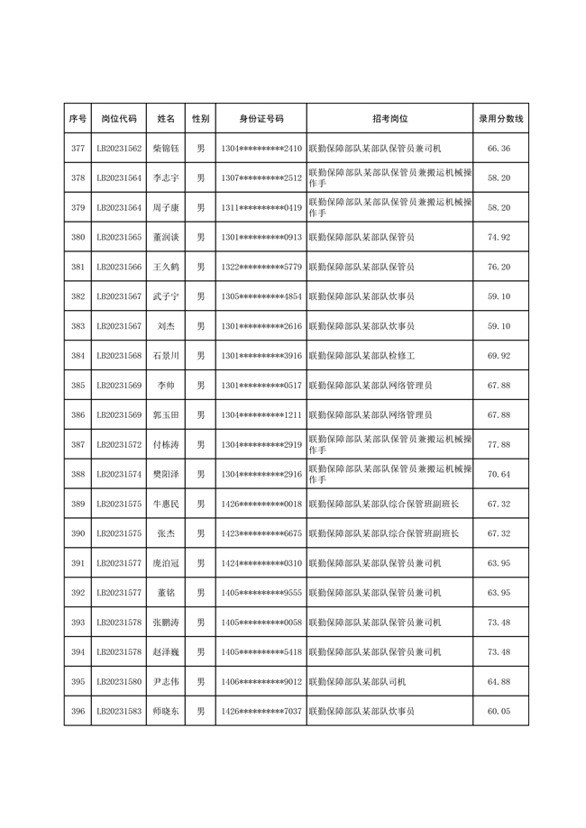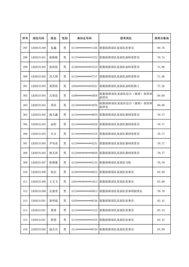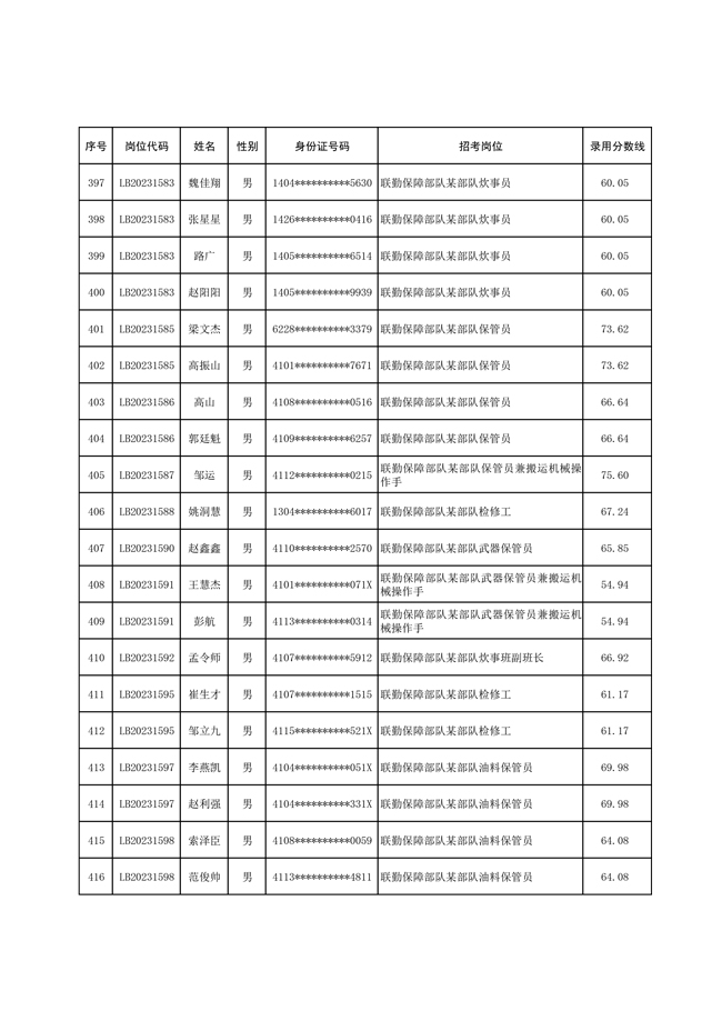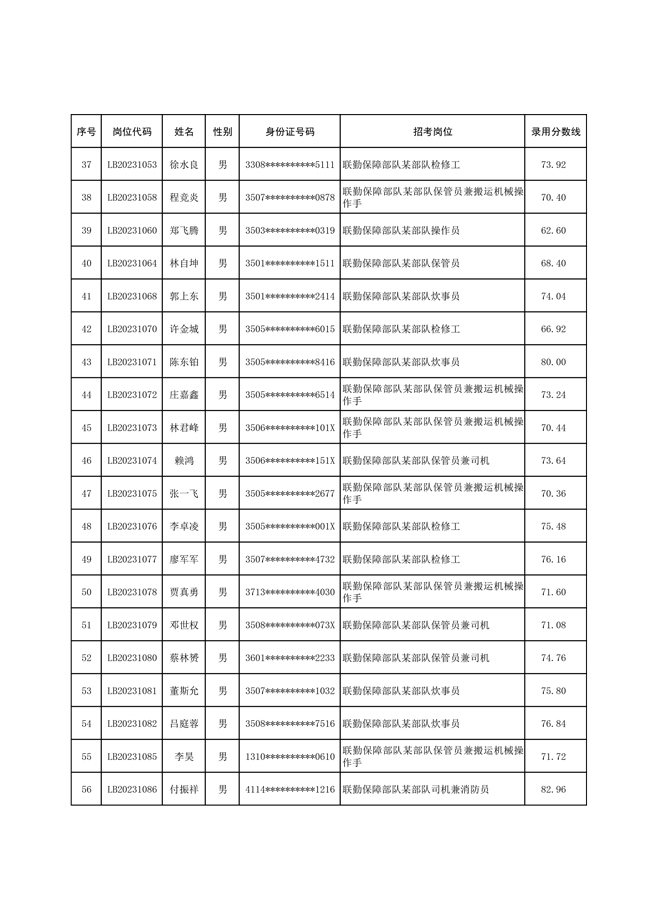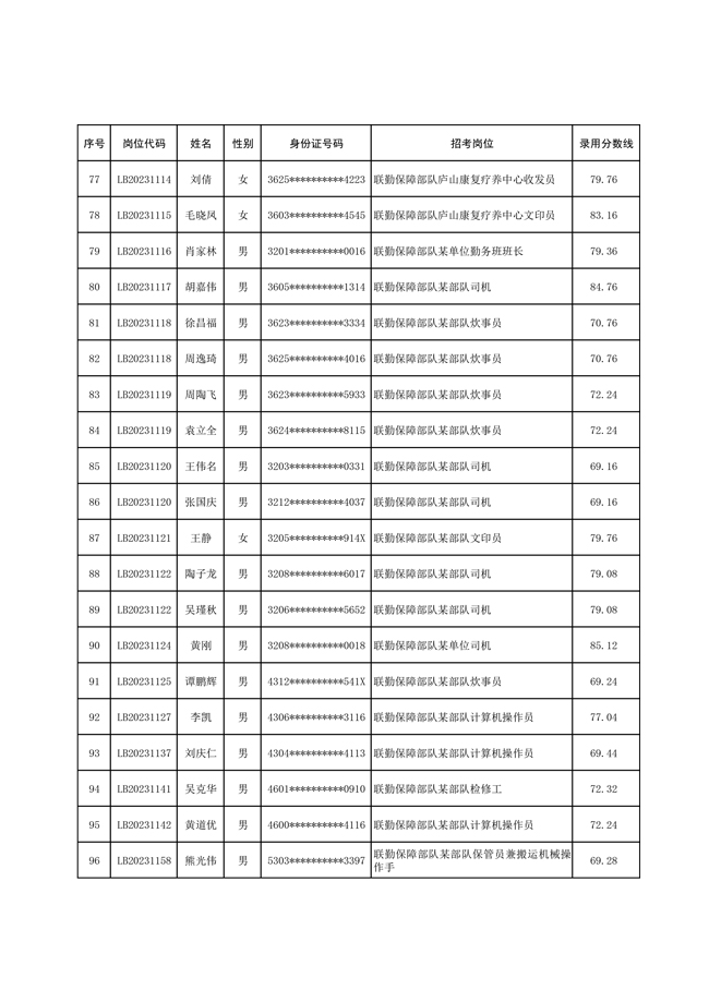 2025年武裝部文職人員擬錄用名單(含上岸分數(shù)線) 2025-10-09