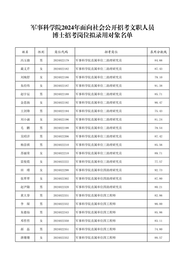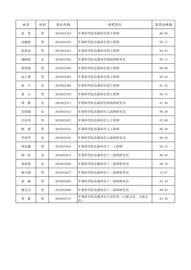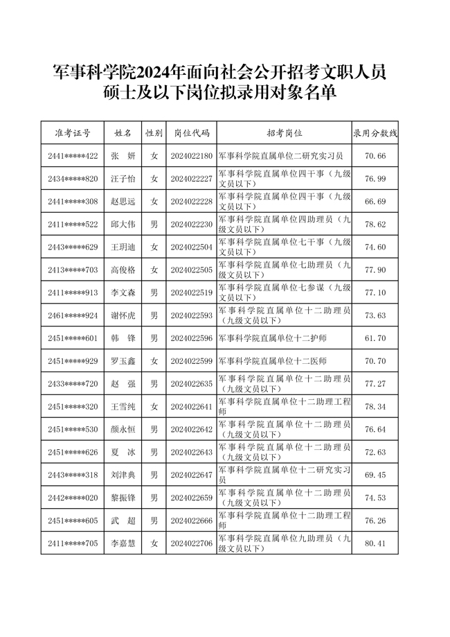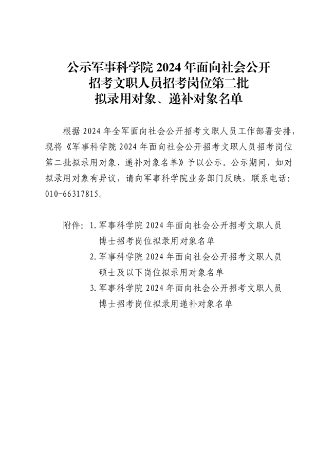 原文標題:公示軍事科學院2024年面向社會公開招考文職人員招考崗位第二批擬錄用對象、遞補對象名單