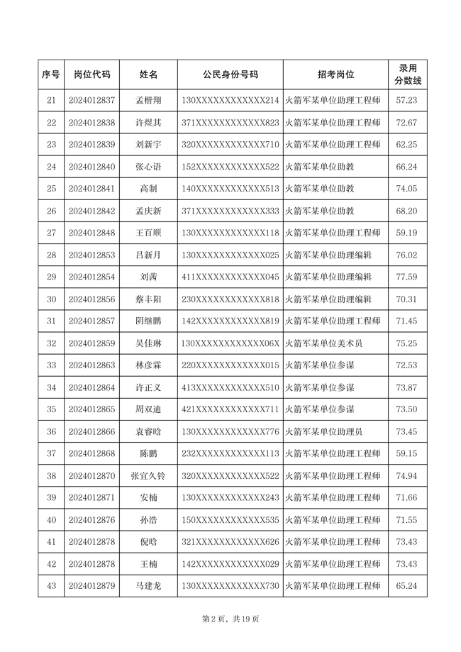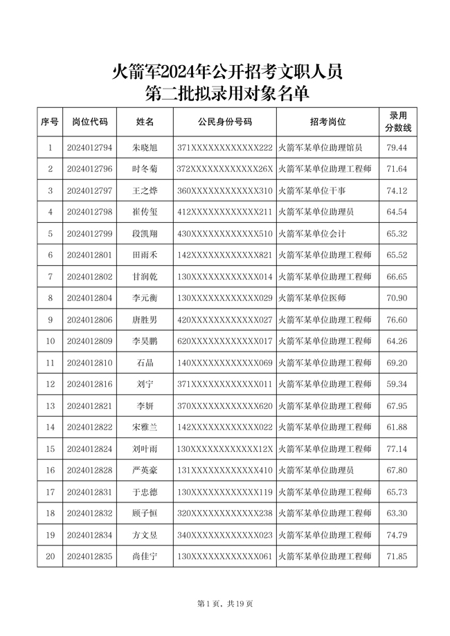 原文標(biāo)題:公示火箭軍2024年公開(kāi)招考文職人員第二批擬錄用對(duì)象名單