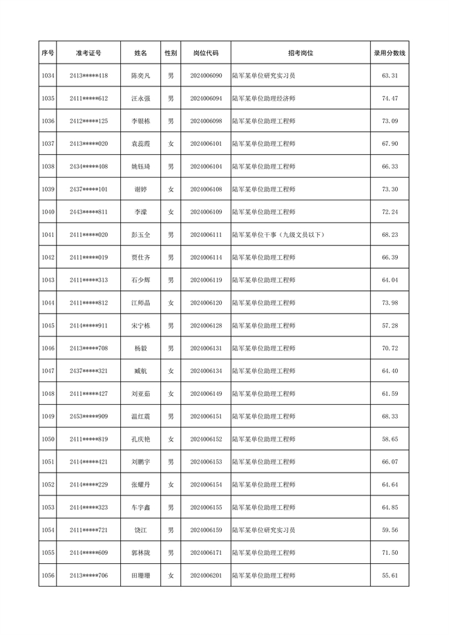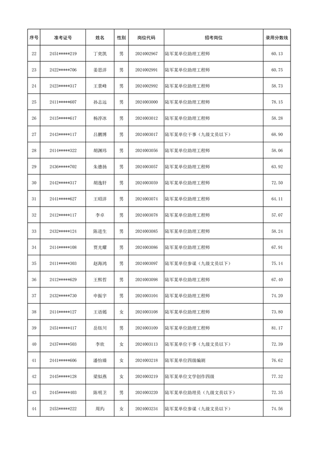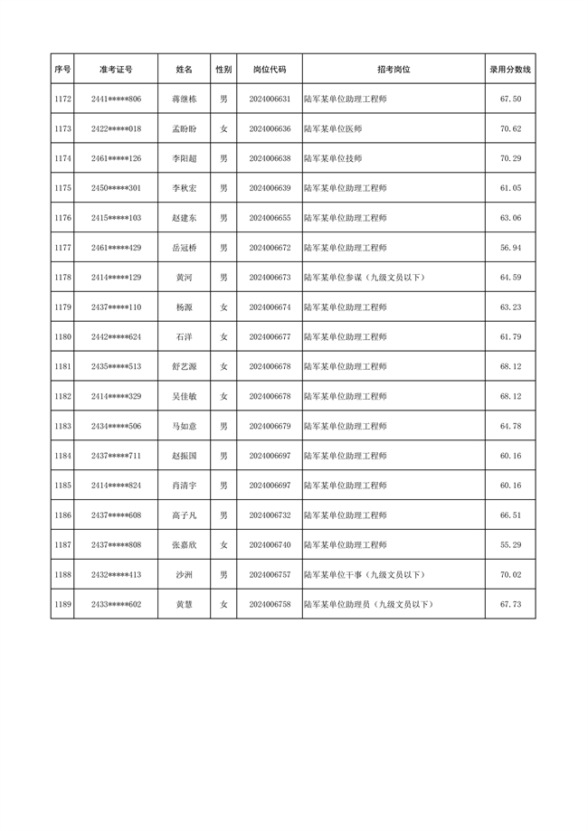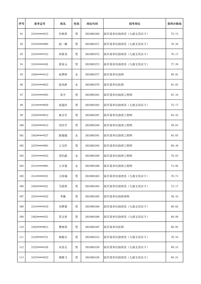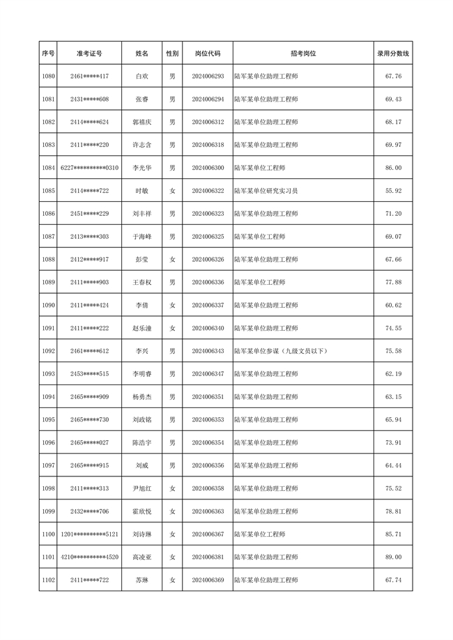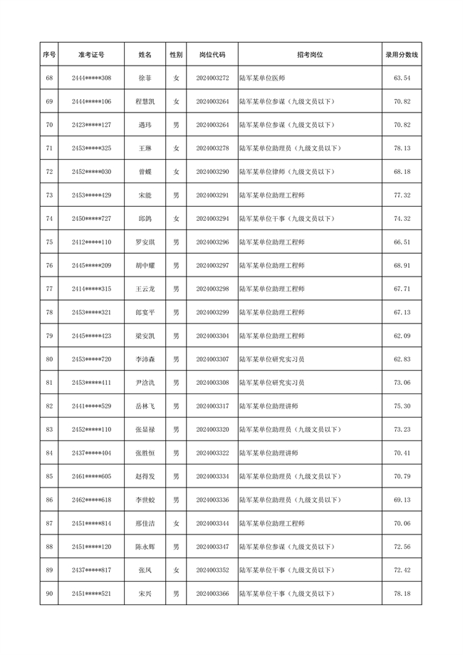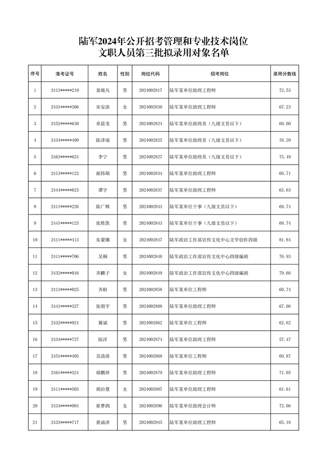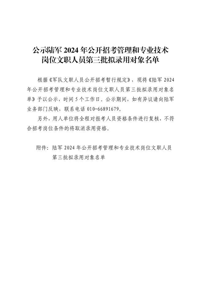 原文標(biāo)題:公示陸軍2024年公開招考管理和專業(yè)技術(shù)崗位文職人員第三批擬錄用對象名單