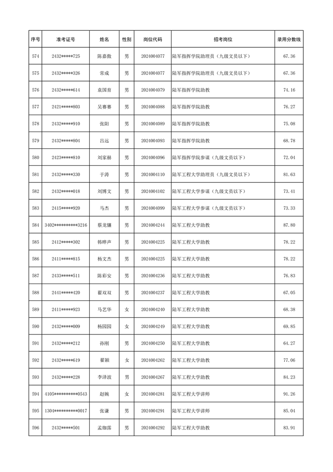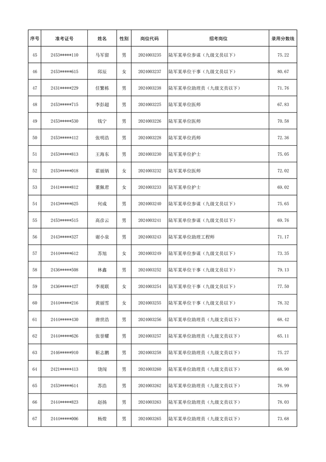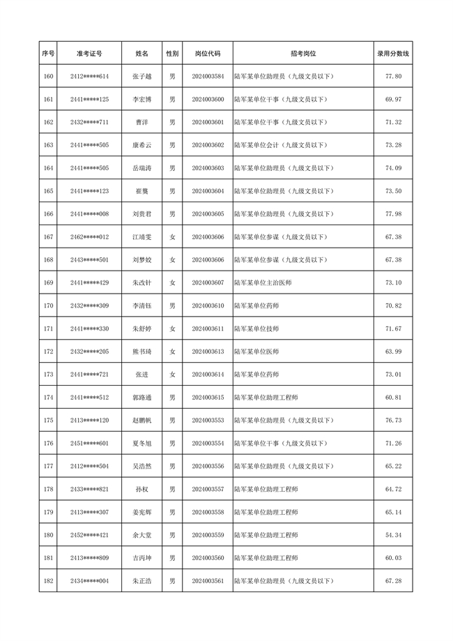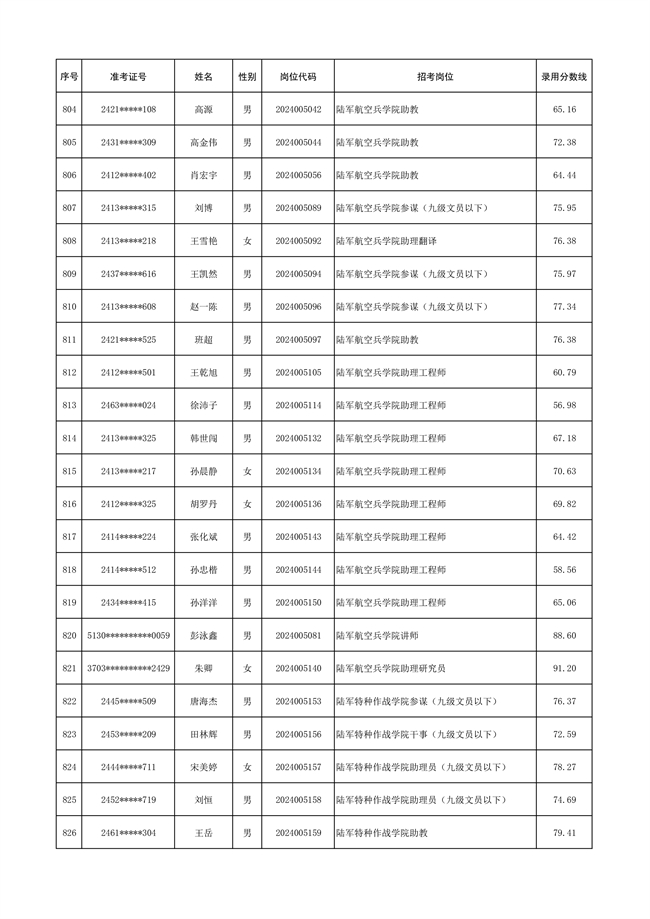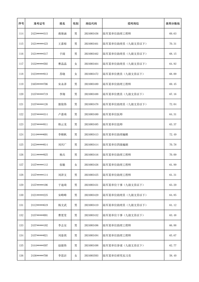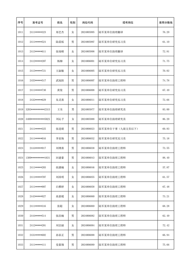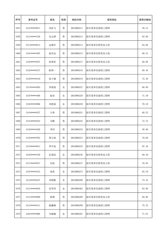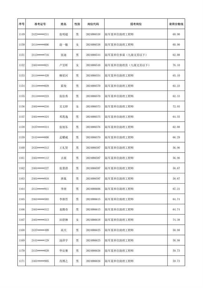 原文標(biāo)題:公示陸軍2024年公開招考管理和專業(yè)技術(shù)崗位文職人員第三批擬錄用對象名單