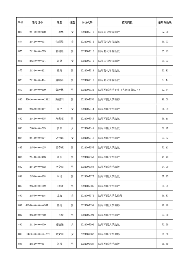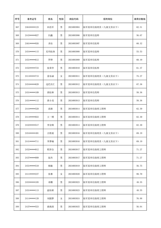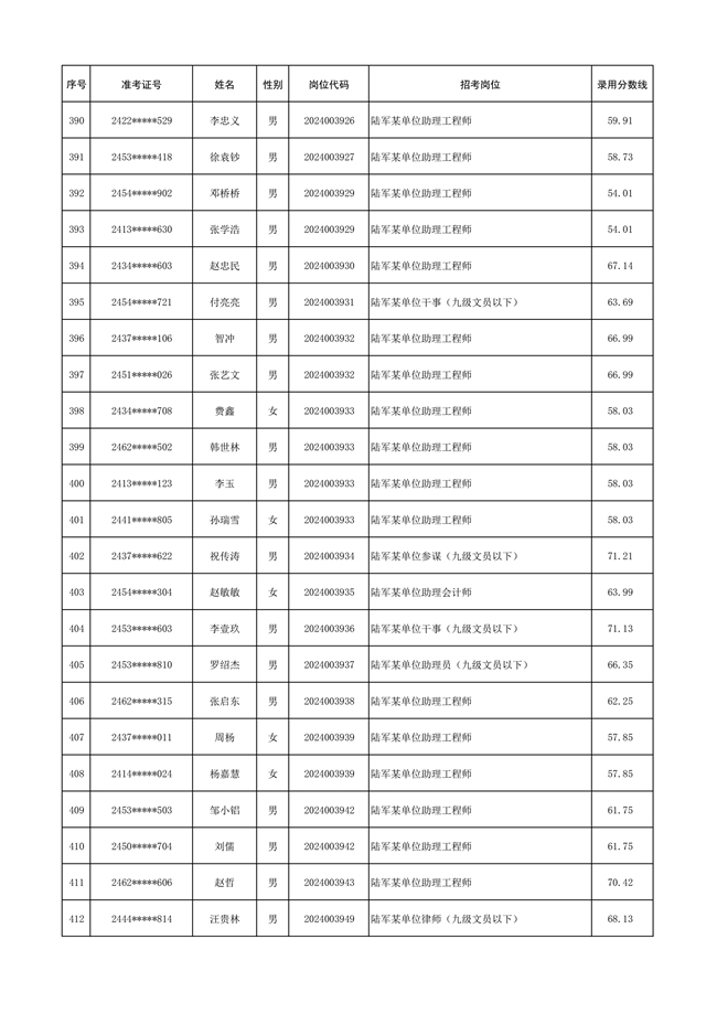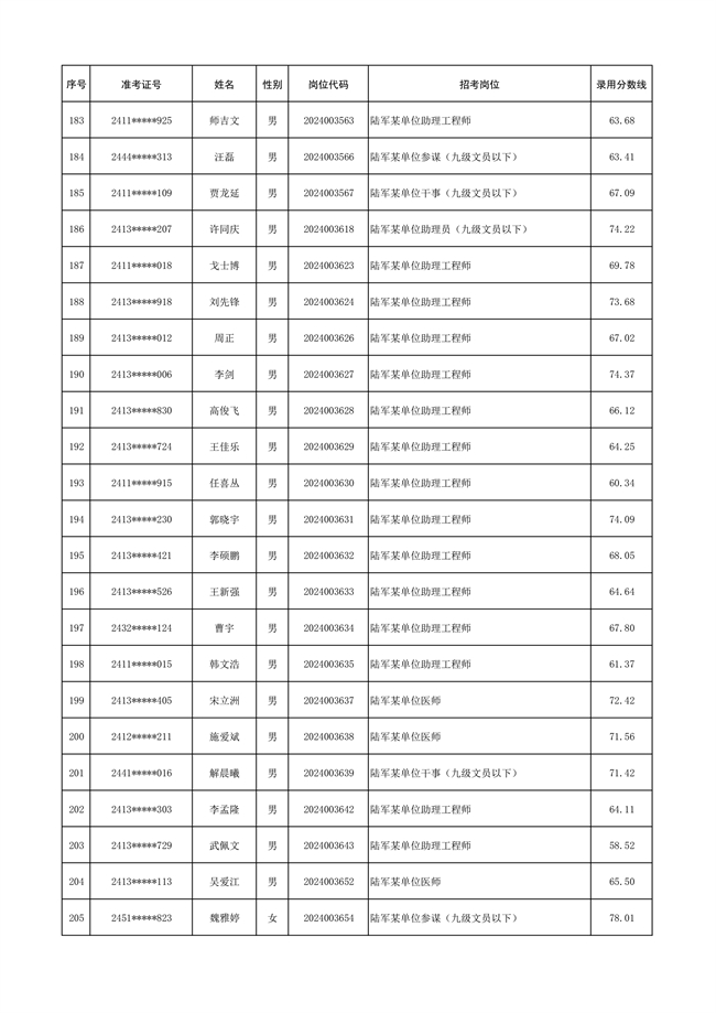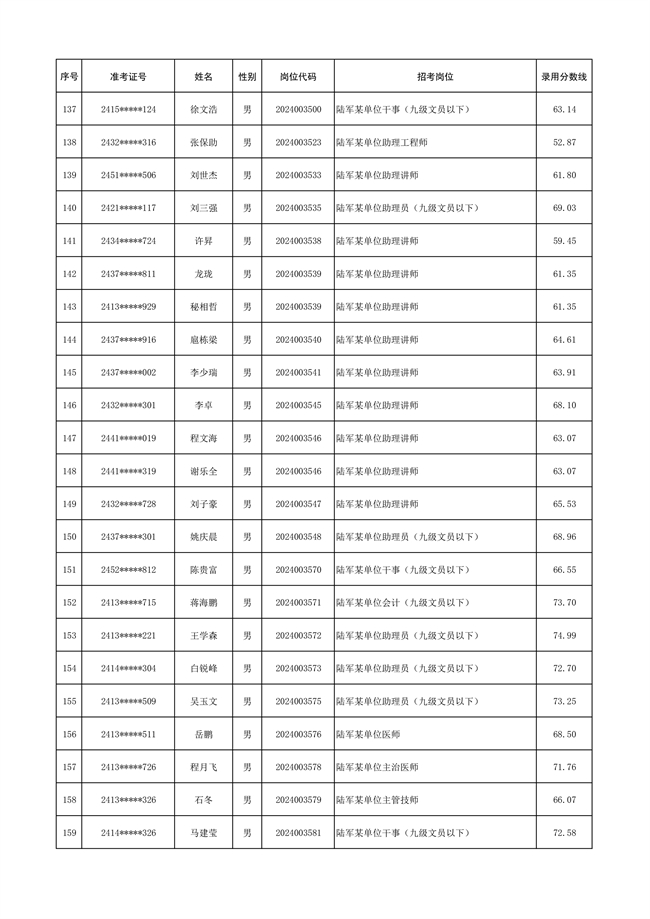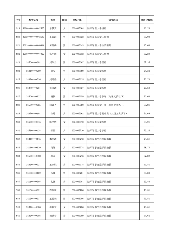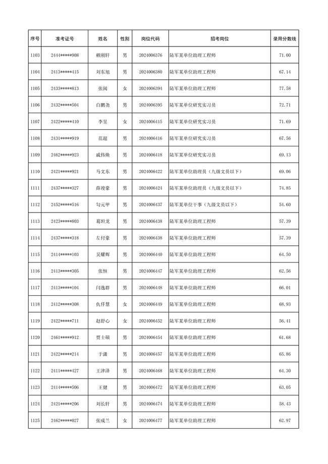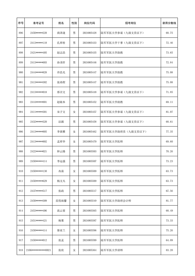 原文標(biāo)題:公示陸軍2024年公開招考管理和專業(yè)技術(shù)崗位文職人員第三批擬錄用對象名單