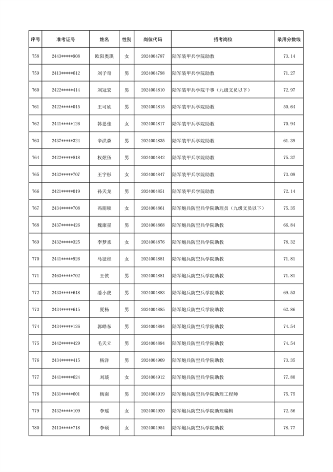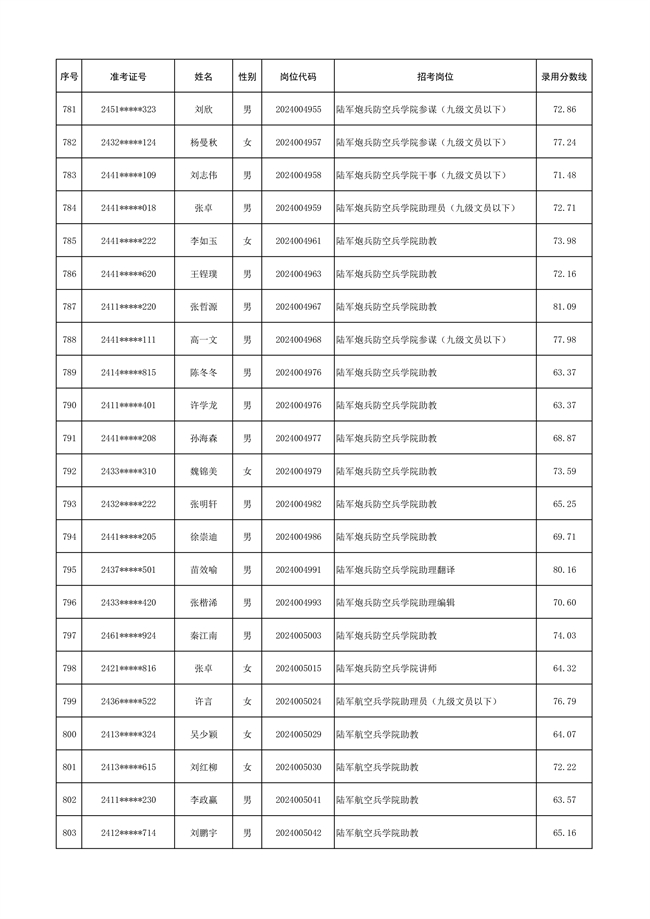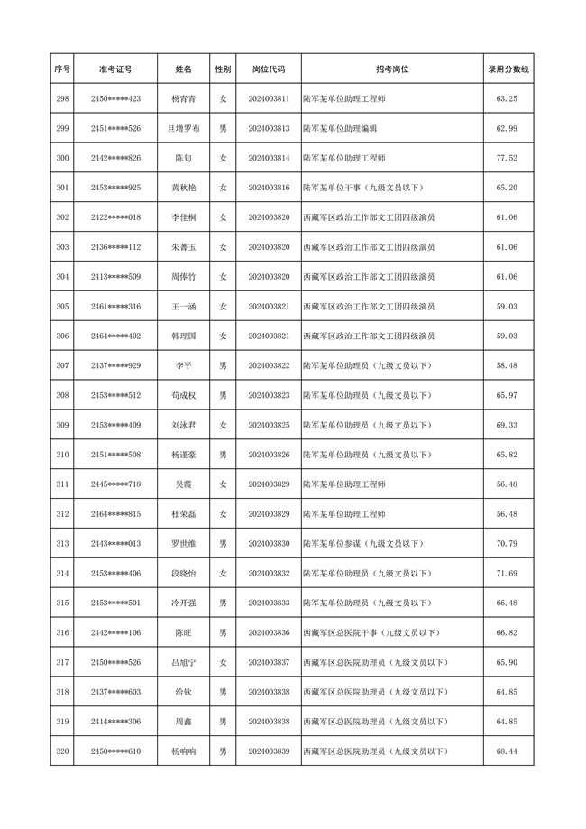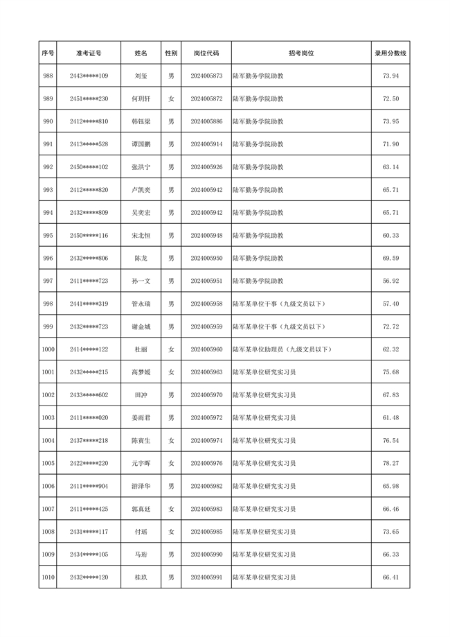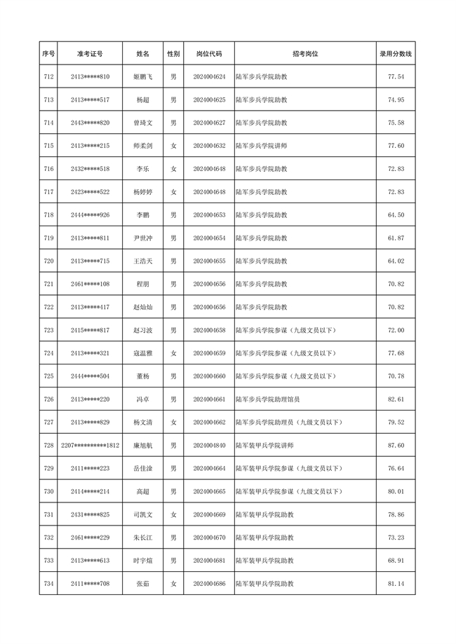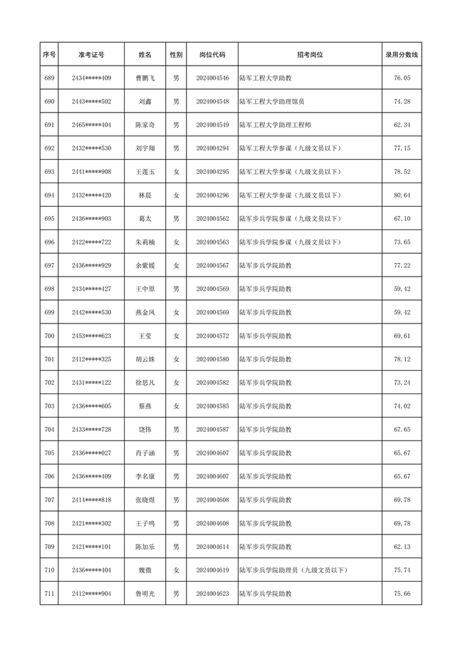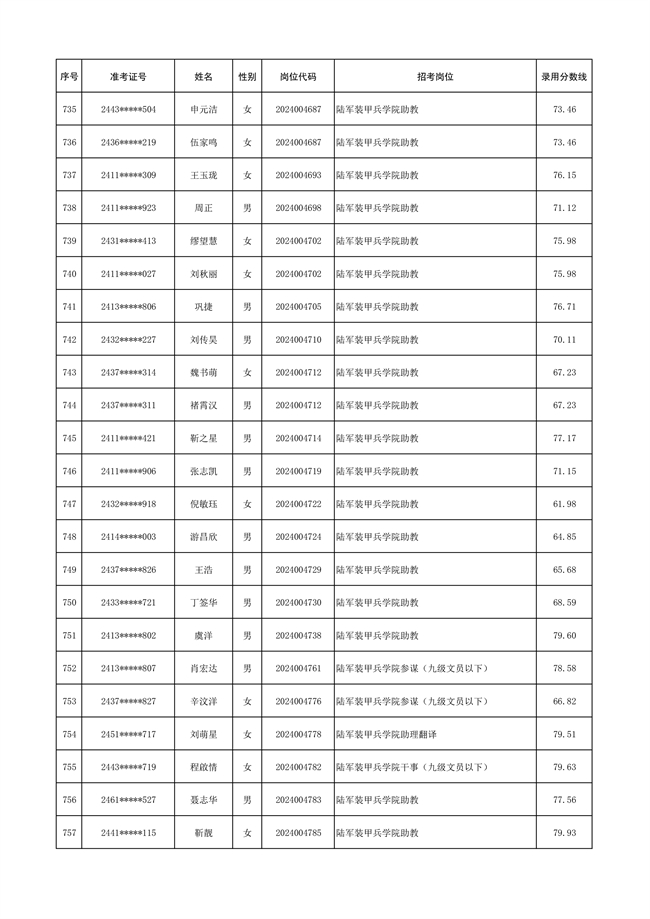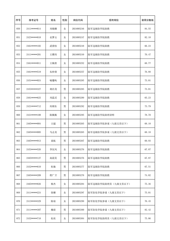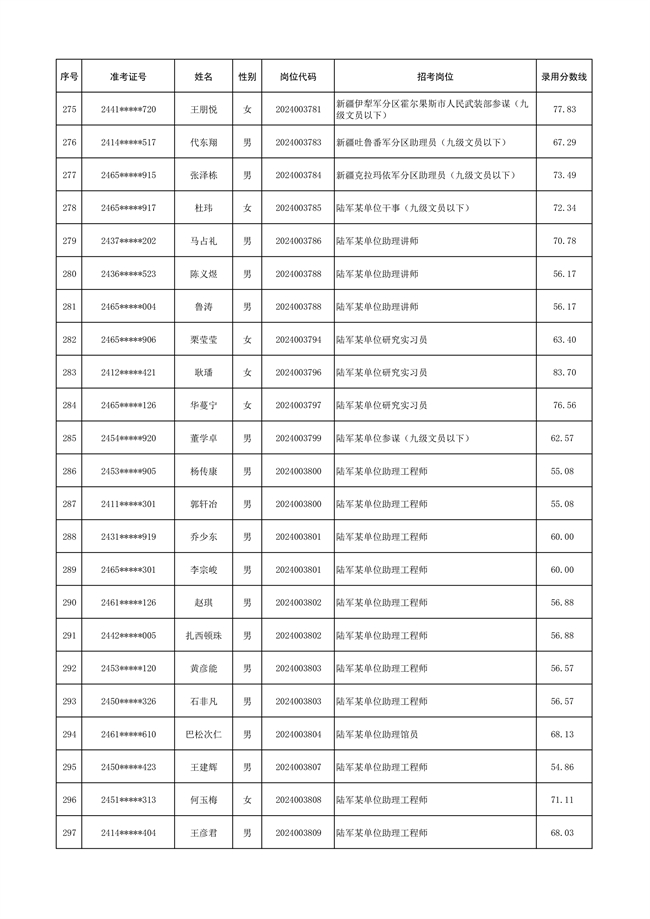 2025年武裝部文職人員擬錄用名單(含上岸分?jǐn)?shù)線) 2025-10-09