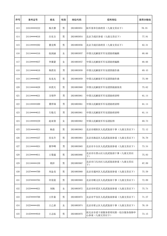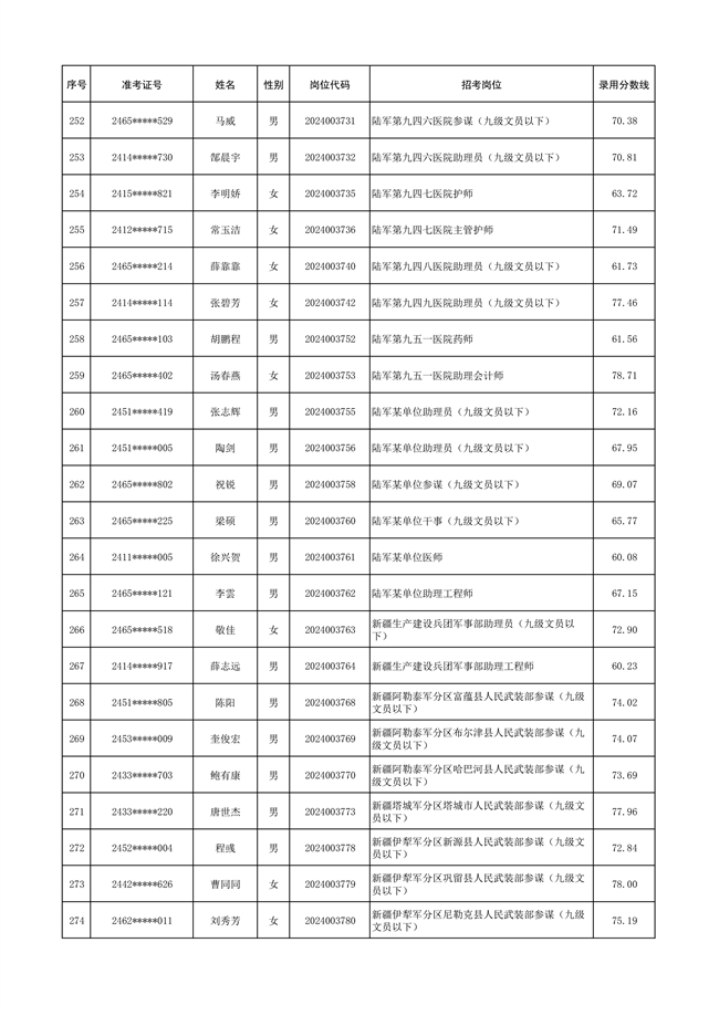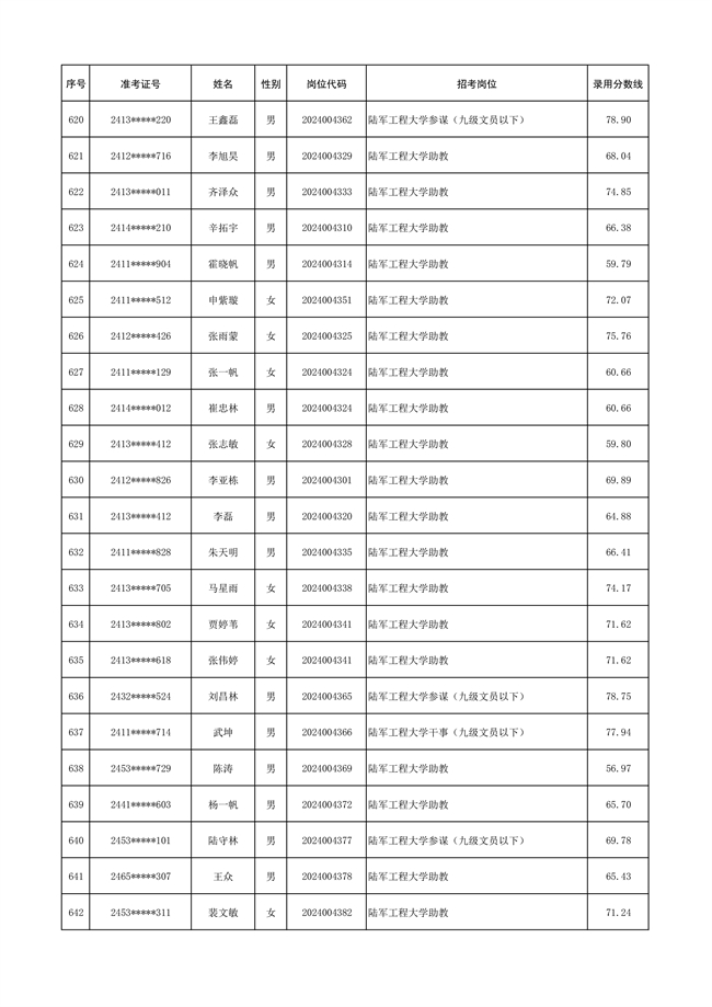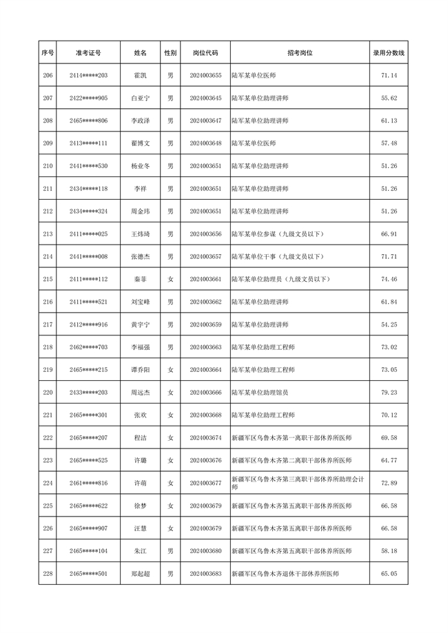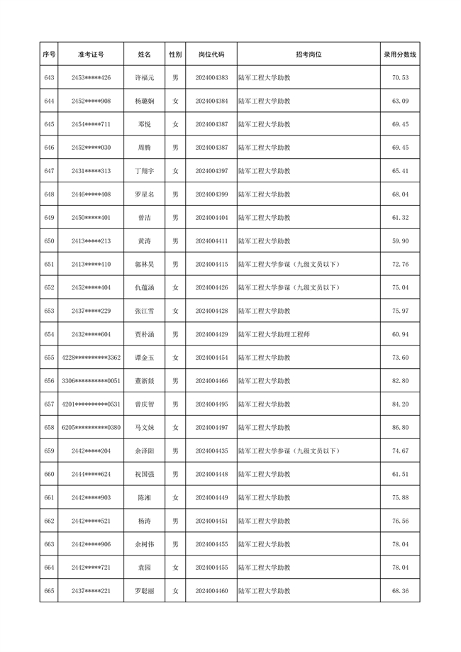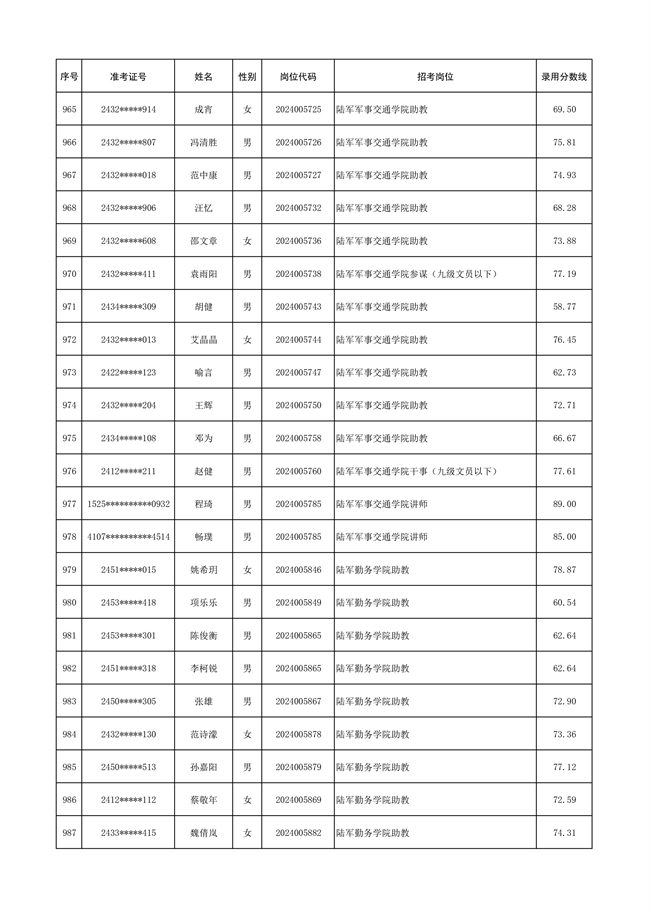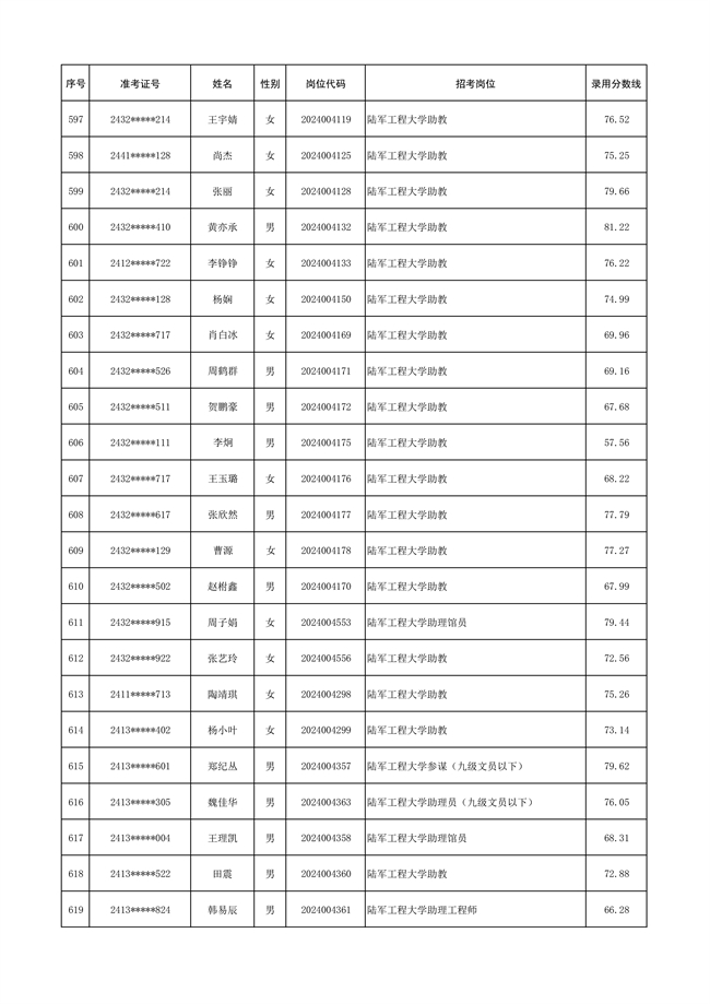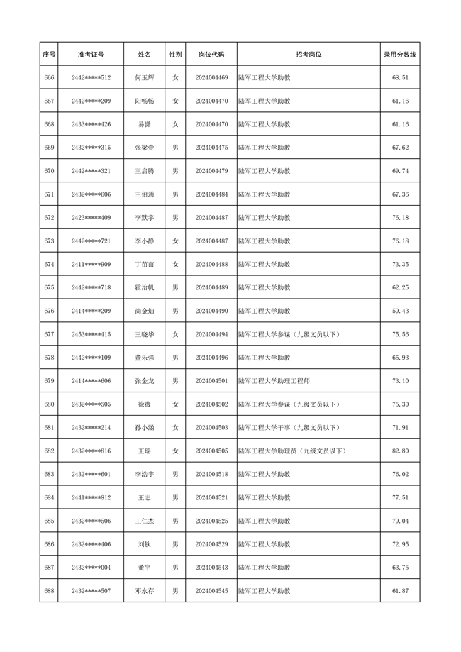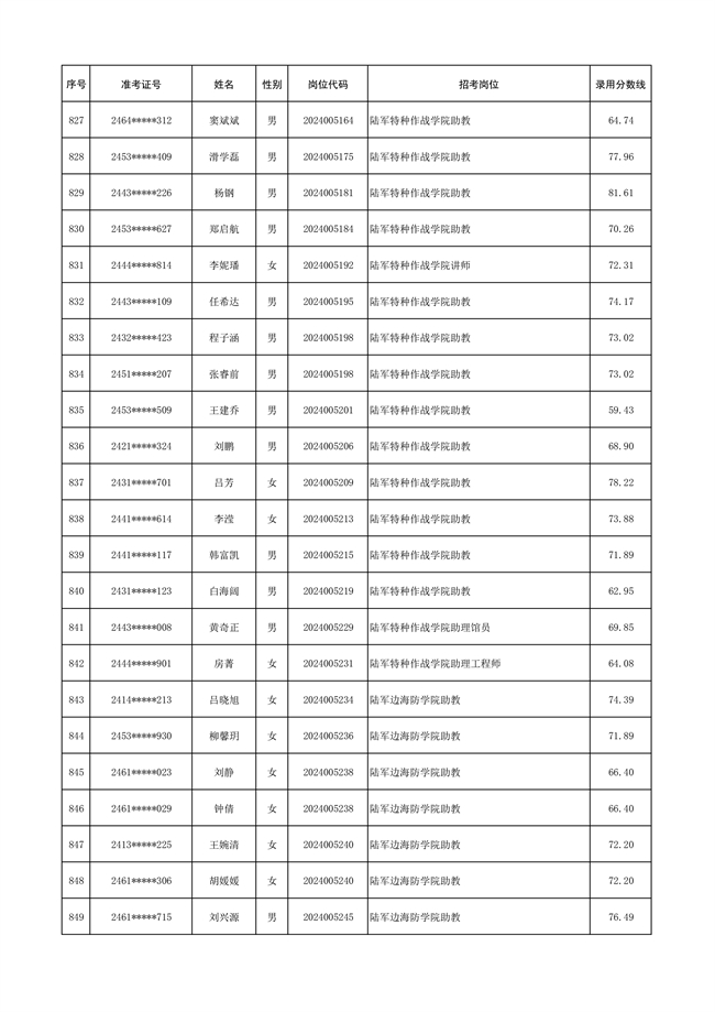 2025年武裝部文職人員擬錄用名單(含上岸分?jǐn)?shù)線) 2025-10-09