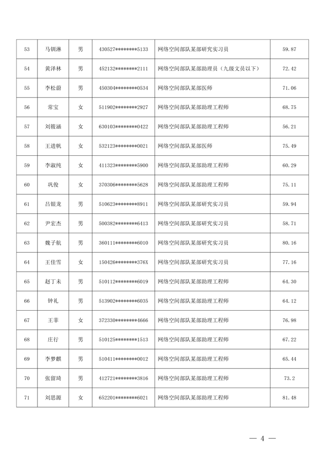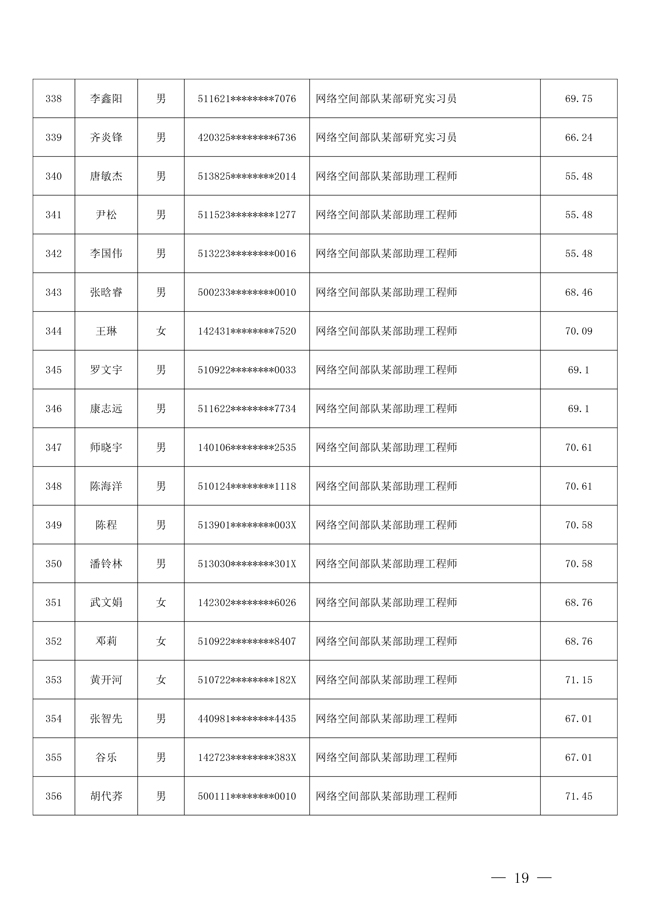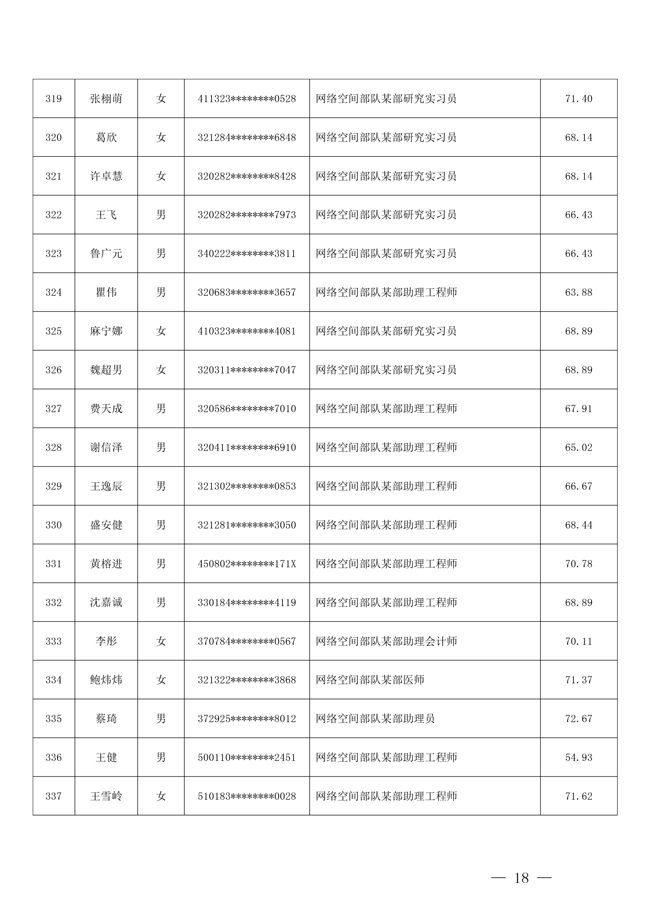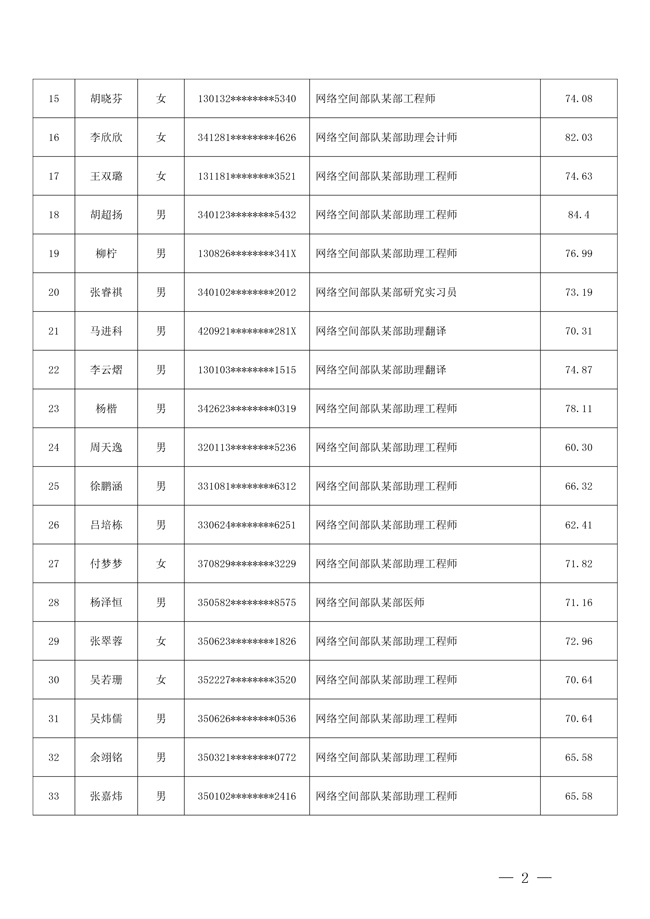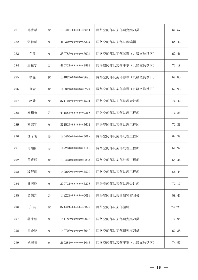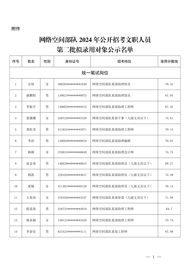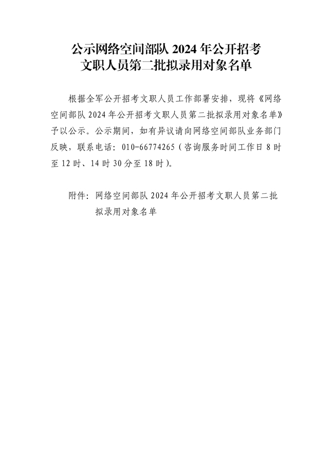 原文標題:公示網(wǎng)絡空間部隊2024年公開招考文職人員第二批擬錄用對象名單