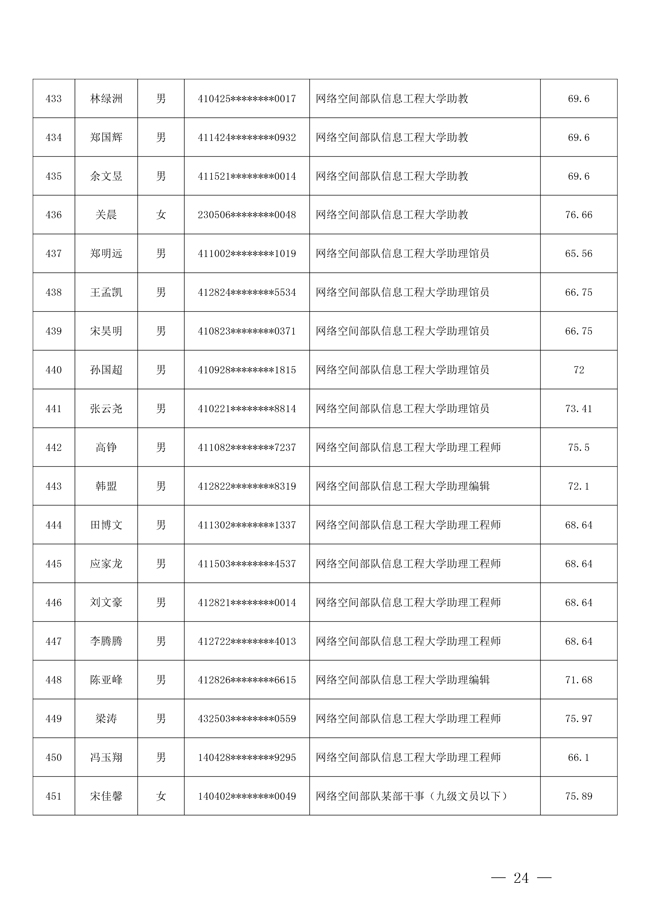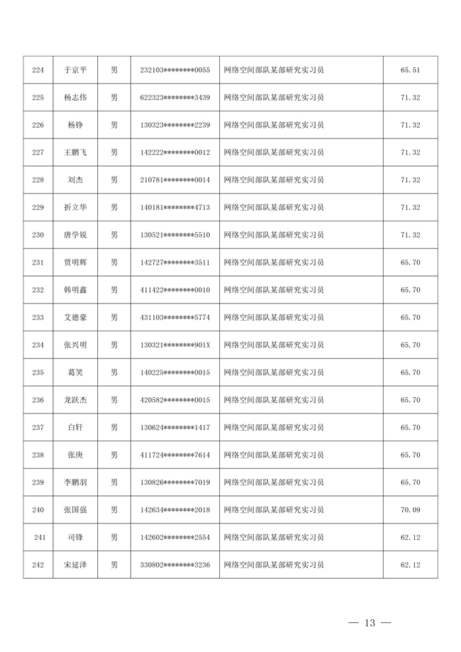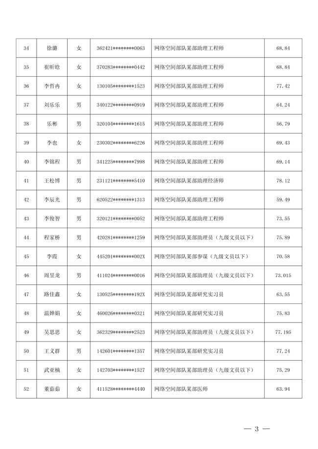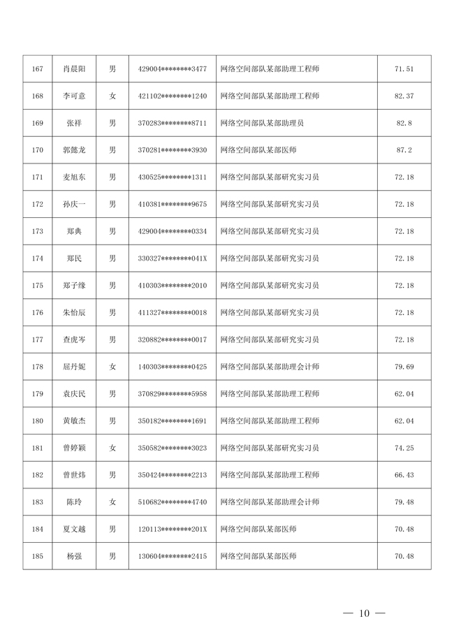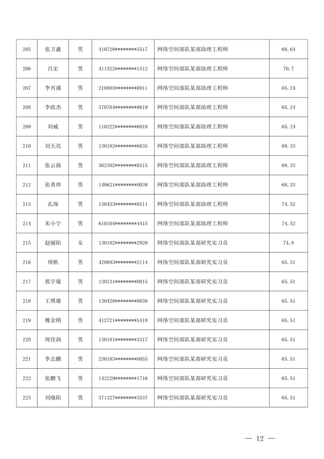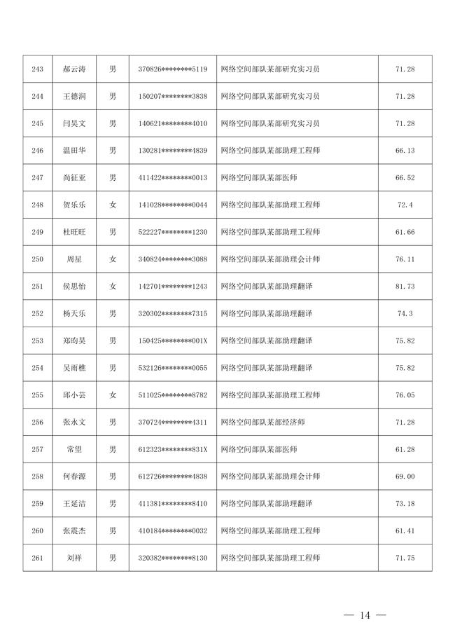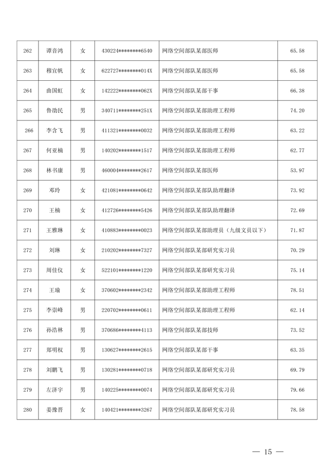原文標題:公示網(wǎng)絡空間部隊2024年公開招考文職人員第二批擬錄用對象名單
