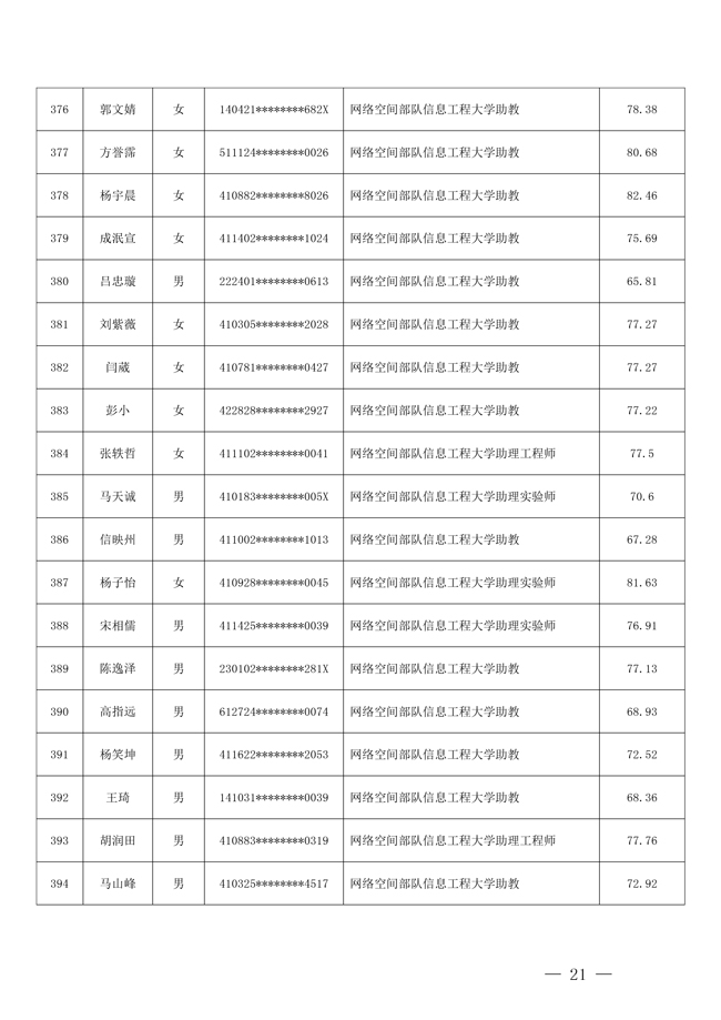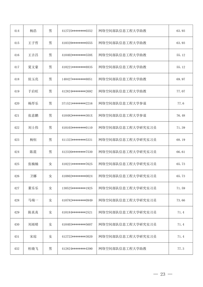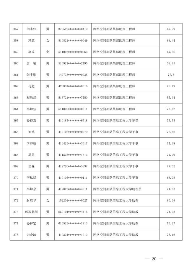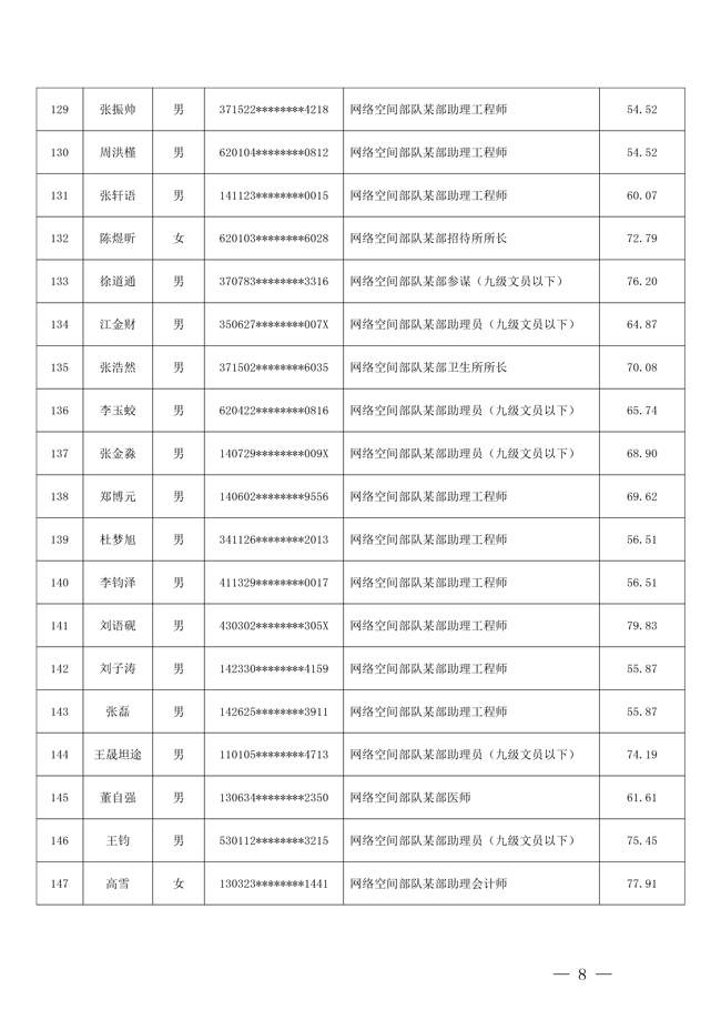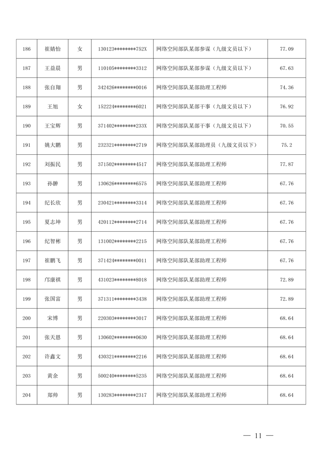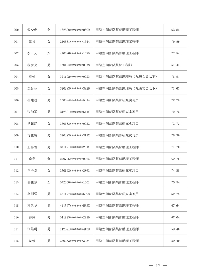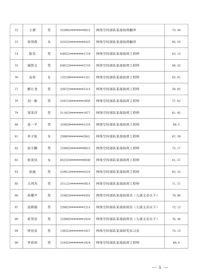 原文標題:公示網(wǎng)絡空間部隊2024年公開招考文職人員第二批擬錄用對象名單