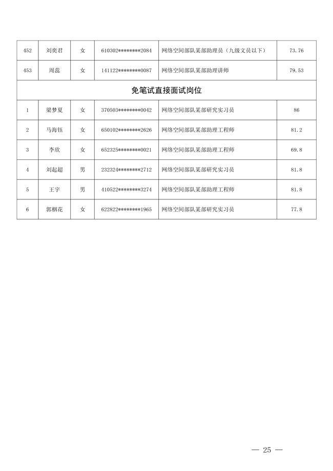 2025年武裝部文職人員擬錄用名單(含上岸分數(shù)線) 2025-10-09