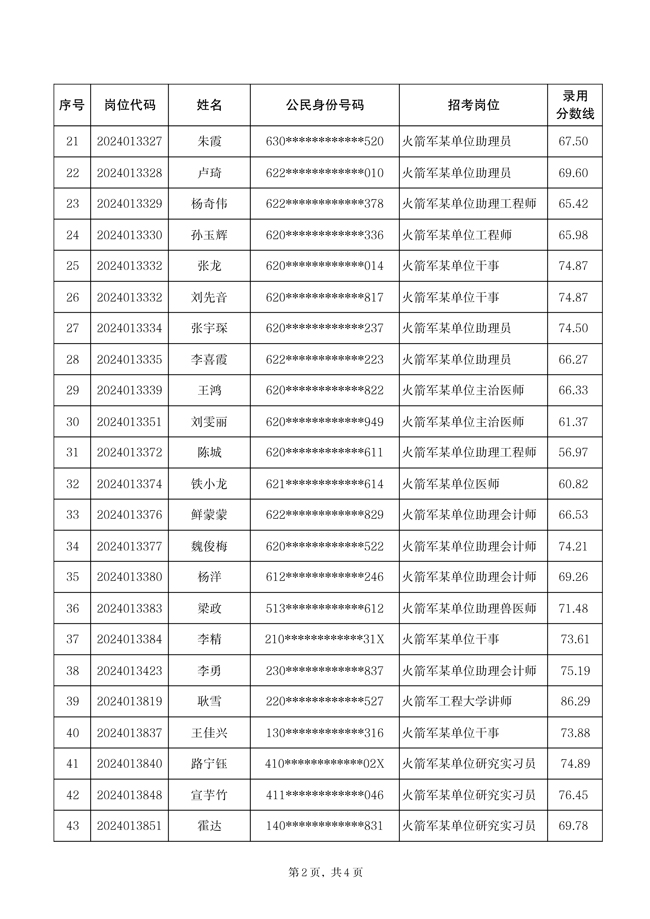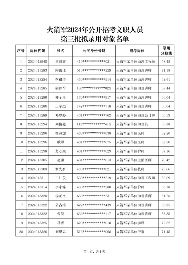 原文標(biāo)題:公示火箭軍2024年公開招考文職人員第三批擬錄用對(duì)象名單