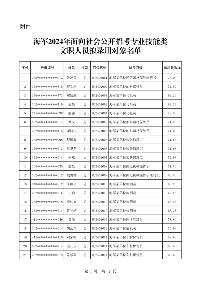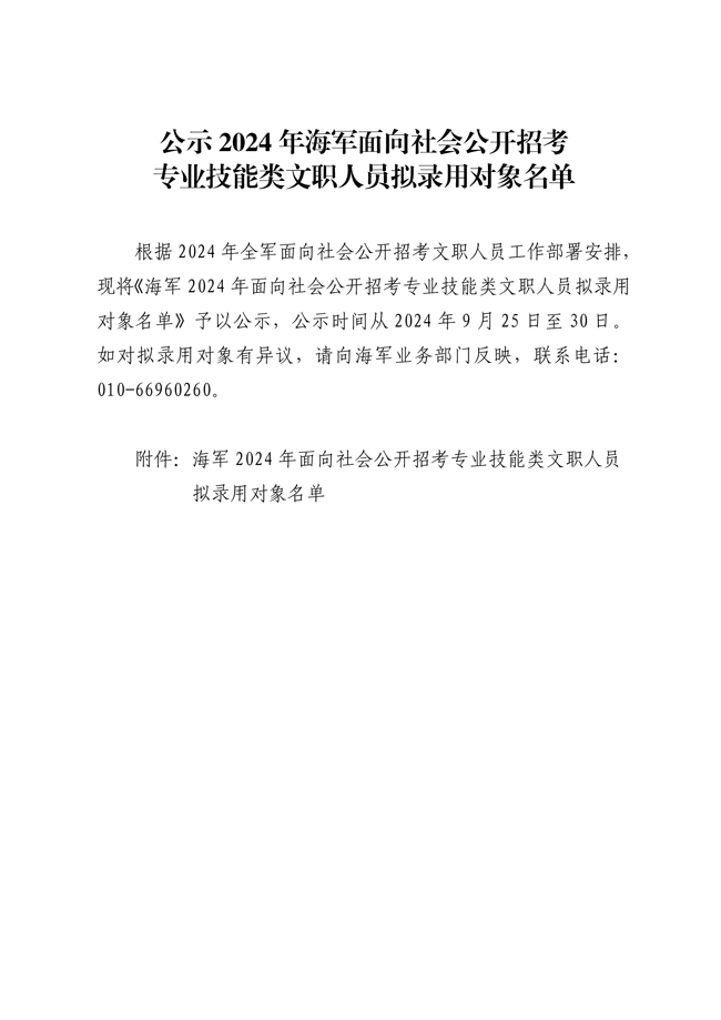 原文標(biāo)題:公示2024年海軍面向社會(huì)公開招考專業(yè)技能類文職人員擬錄用對(duì)象名單