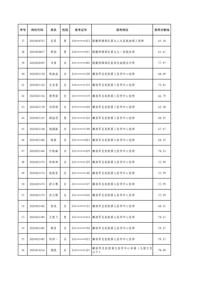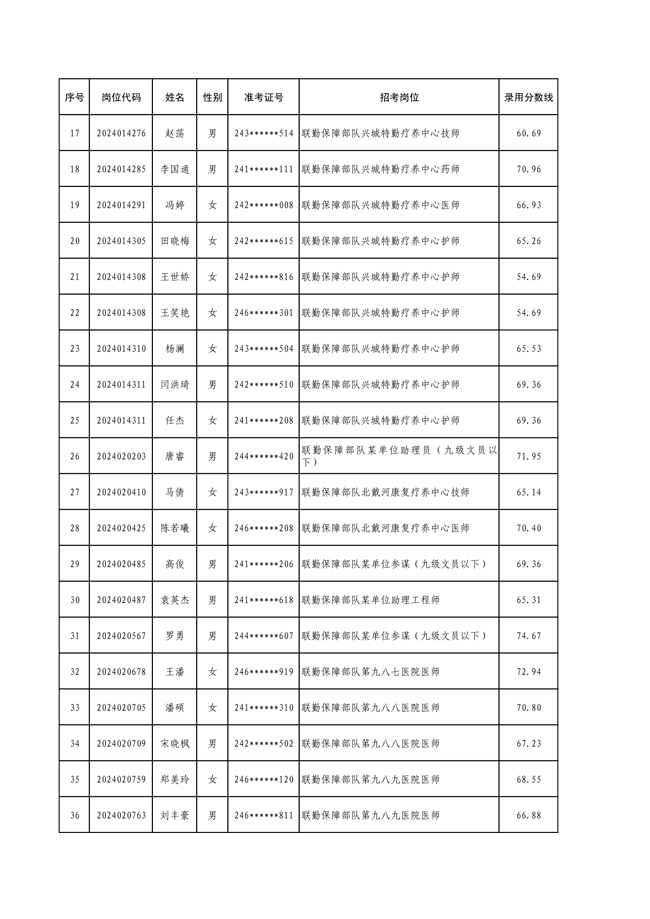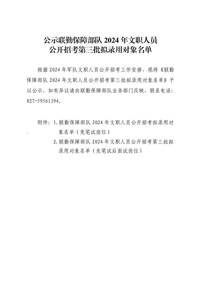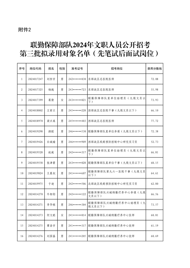 原文標(biāo)題:公示聯(lián)勤保障部隊(duì)2024年文職人員公開招考第三批擬錄用對(duì)象名單