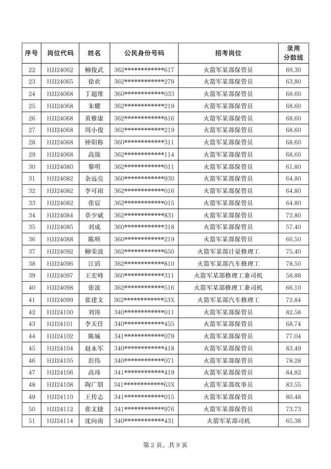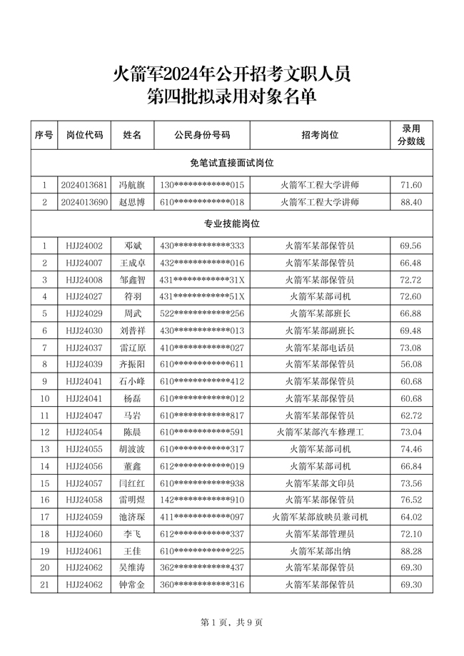 原文標(biāo)題:公示火箭軍2024年公開招考文職人員第四批擬錄用對象名單