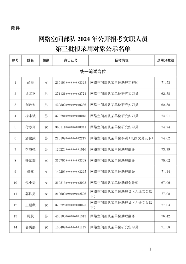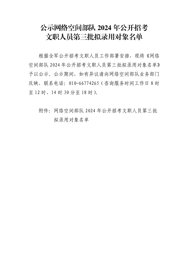 原文標(biāo)題:公示網(wǎng)絡(luò)空間部隊2024年公開招考文職人員第三批擬錄用對象名單