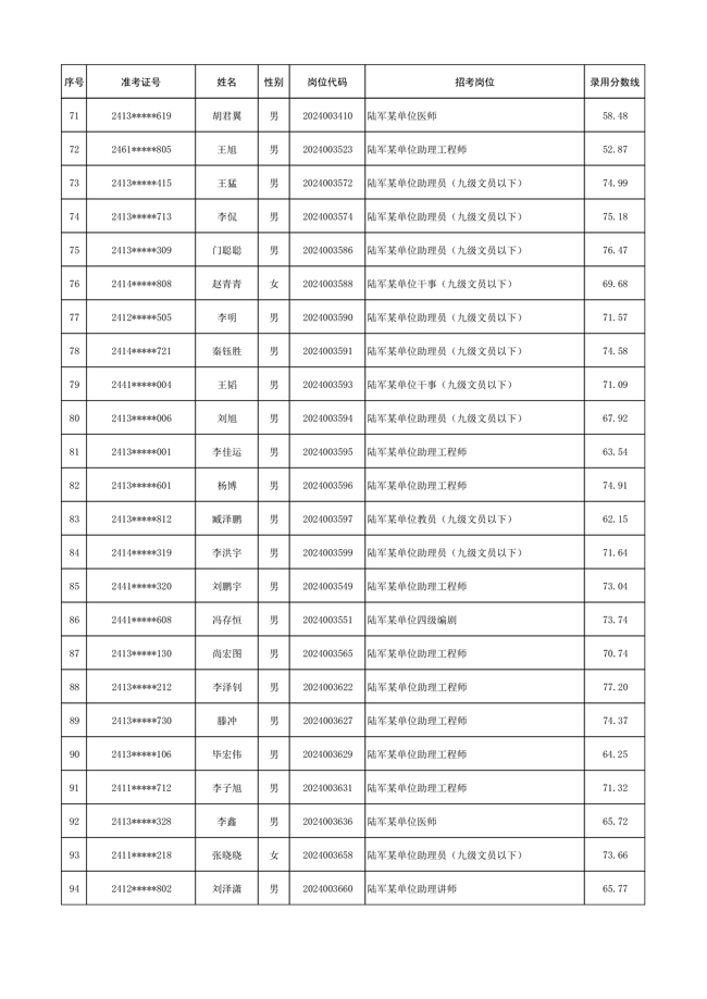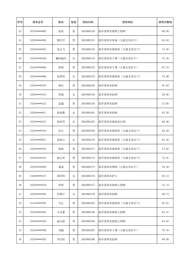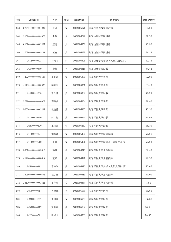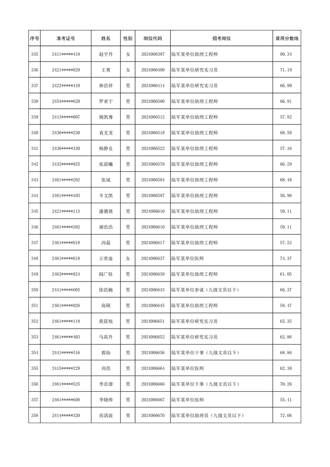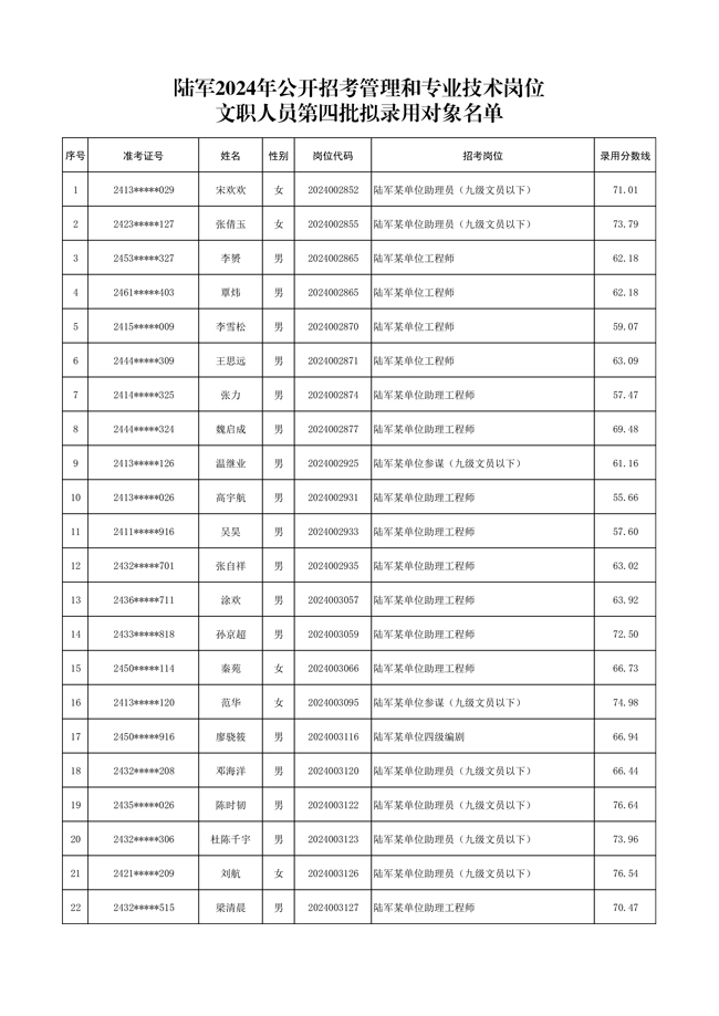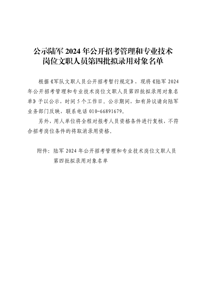 原文標(biāo)題:公示陸軍2024年公開招考管理和專業(yè)技術(shù)崗位文職人員第四批擬錄用對象名單