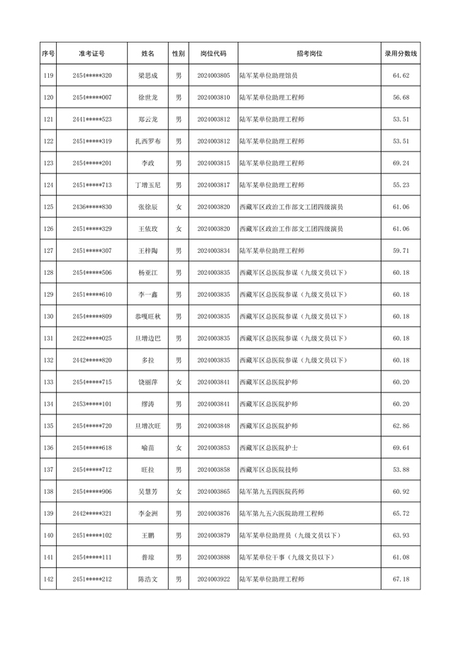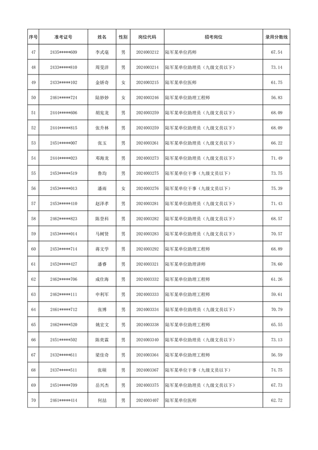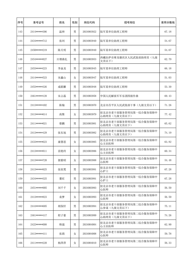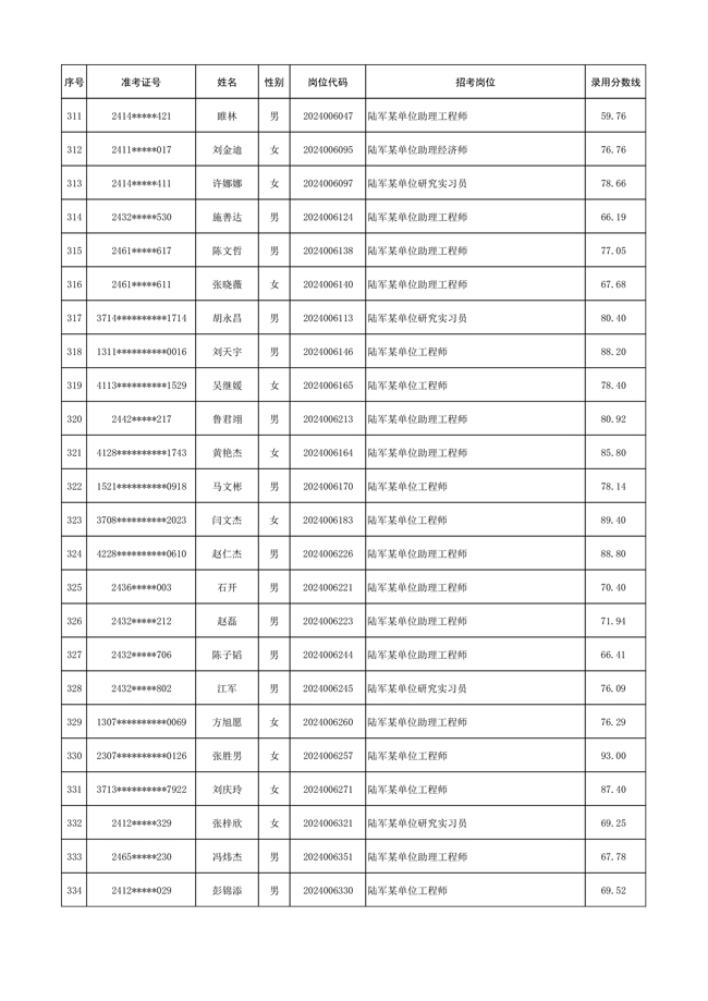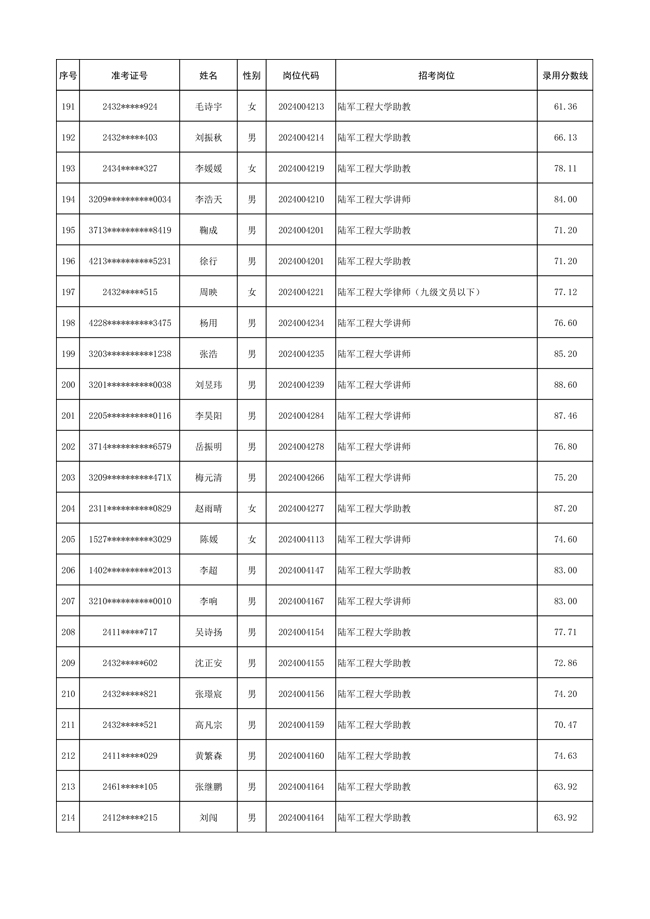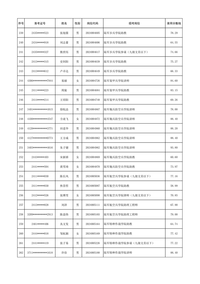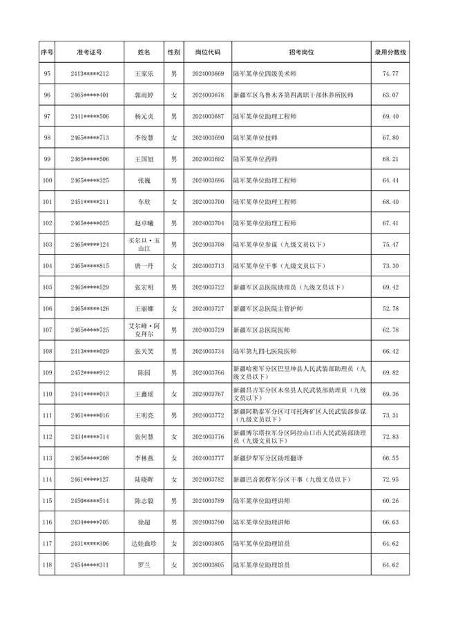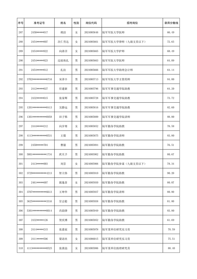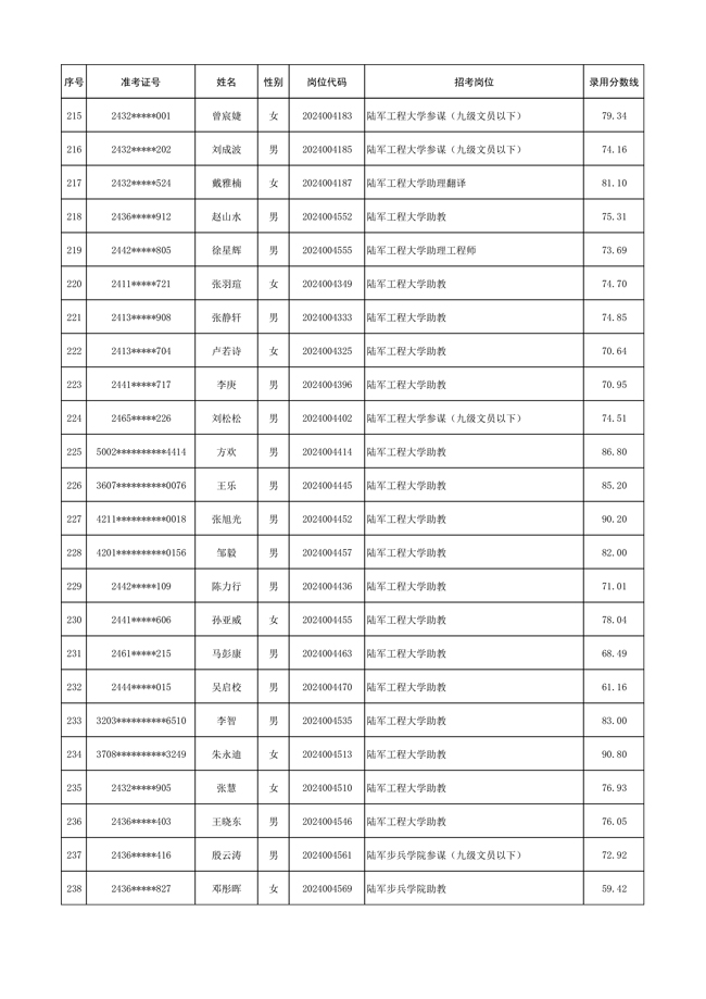 2025年武裝部文職人員擬錄用名單(含上岸分?jǐn)?shù)線) 2025-10-09