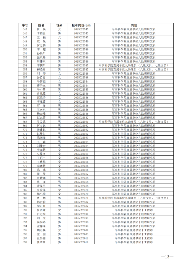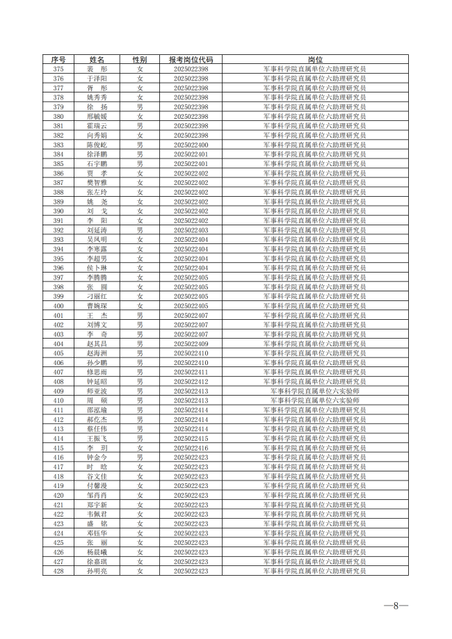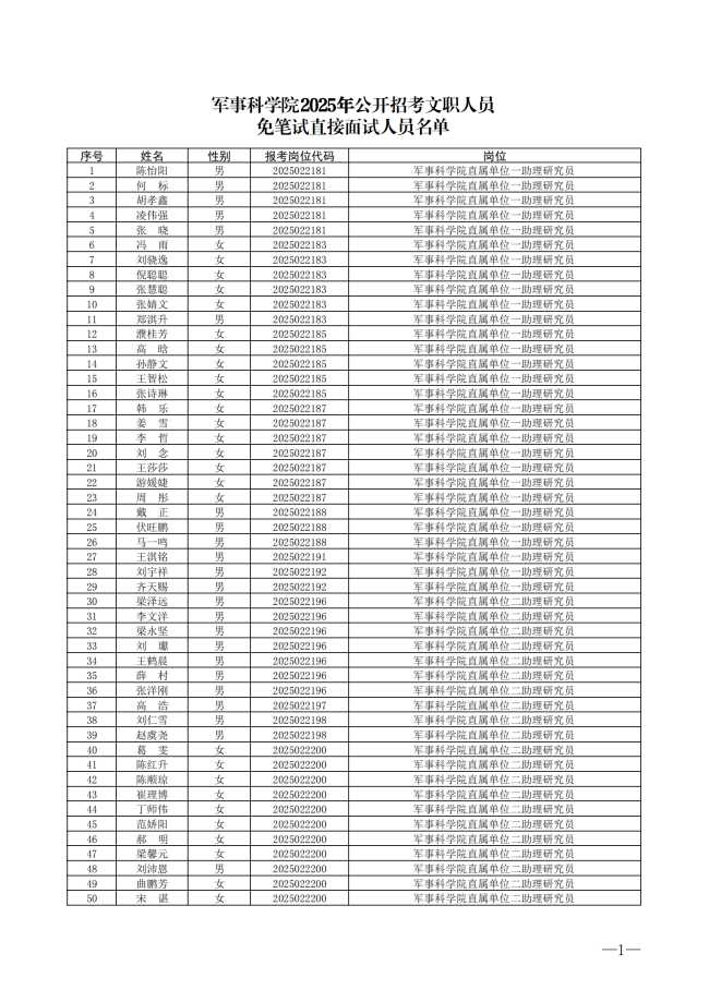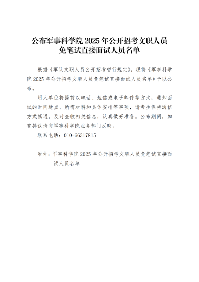 原文標題:公布軍事科學(xué)院2025年公開招考文職人員免筆試直接面試人員名單