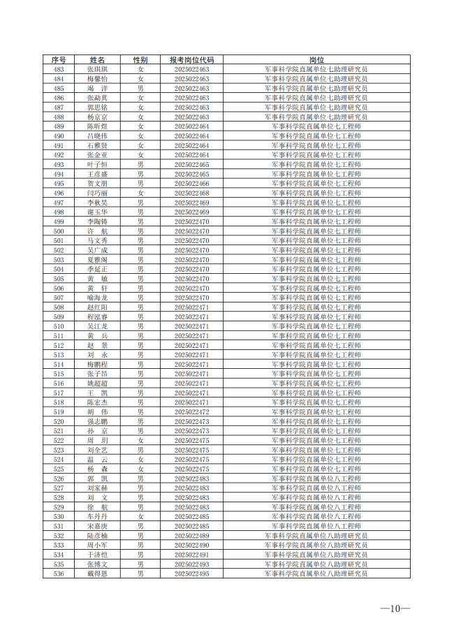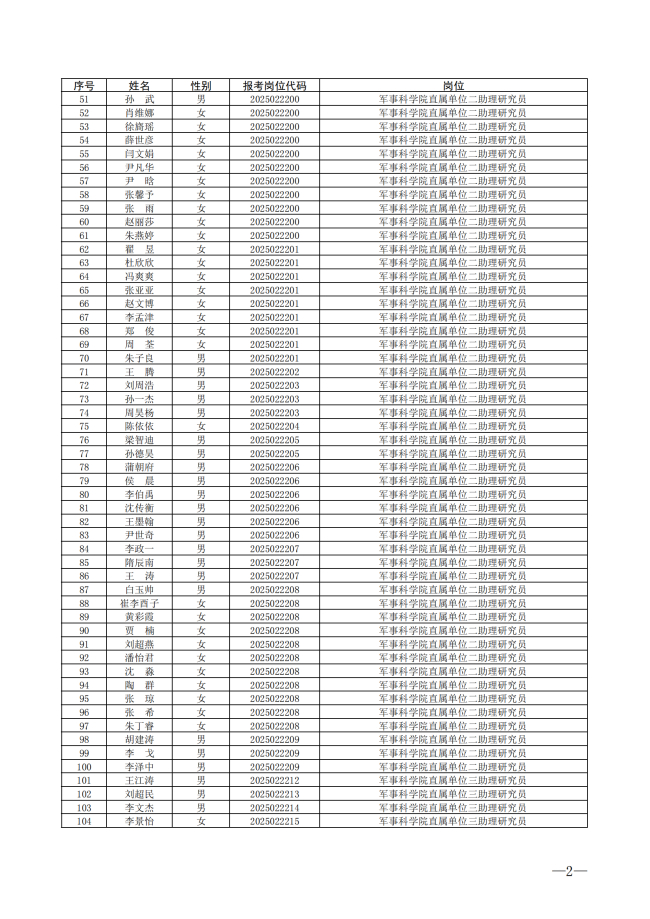 2025年武裝部文職人員擬錄用名單(含上岸分數(shù)線) 2025-10-09