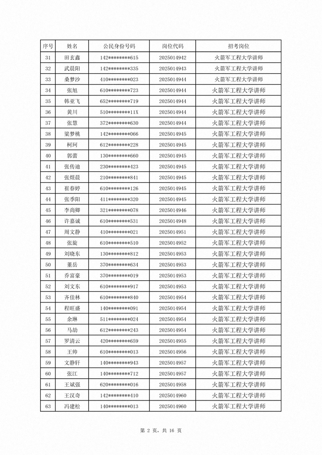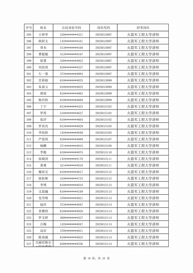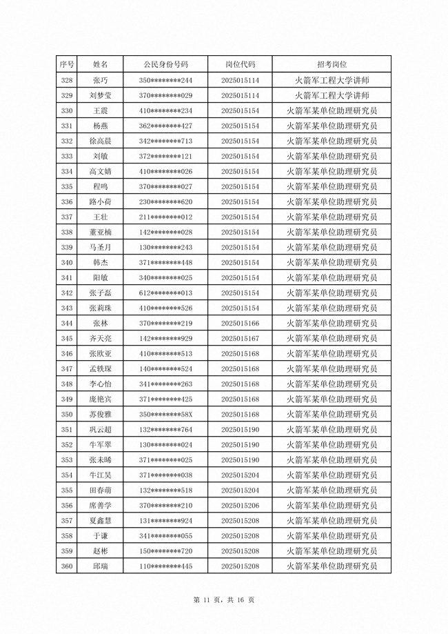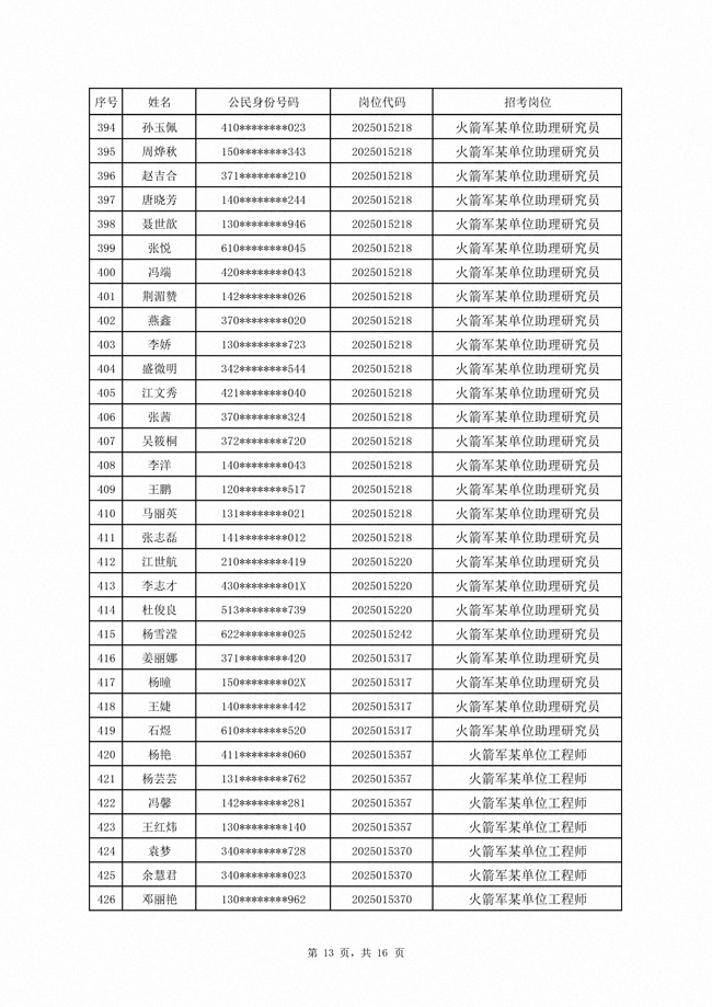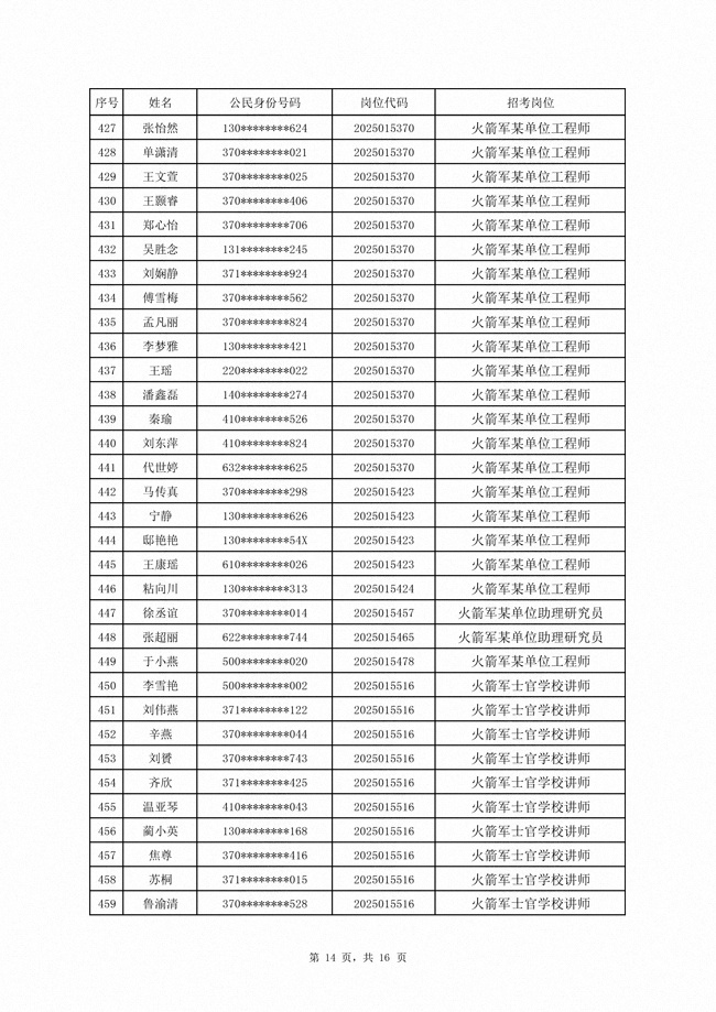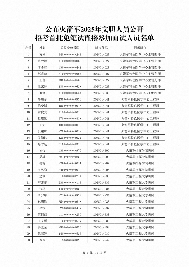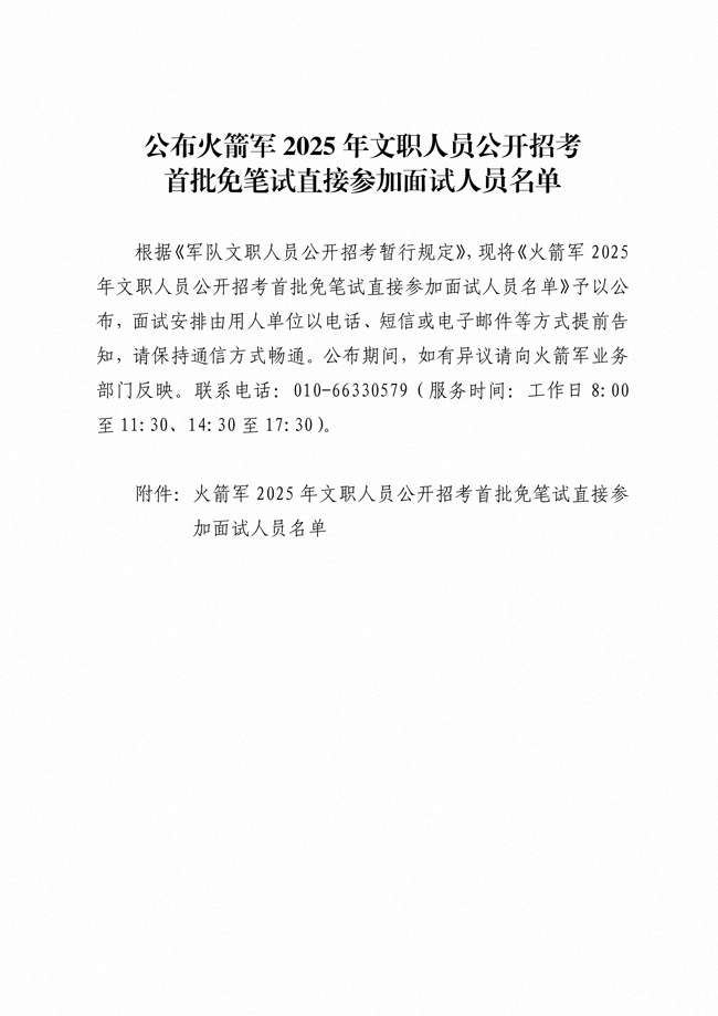 原文標(biāo)題:公布火箭軍2025年文職人員公開招考 首批免筆試直接參加面試人員名單
