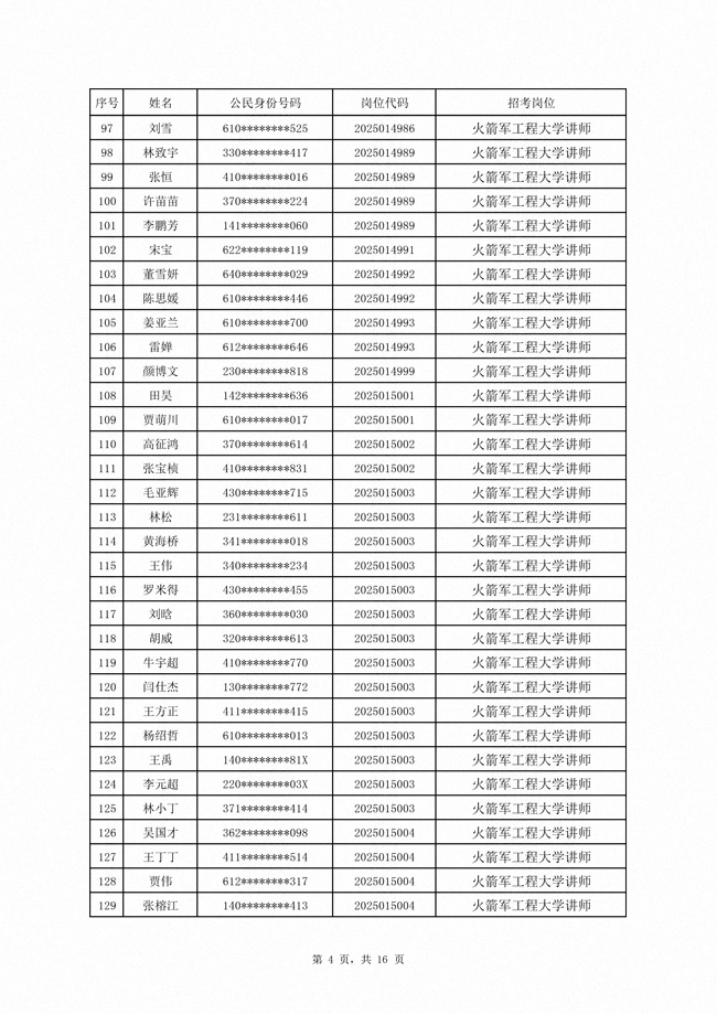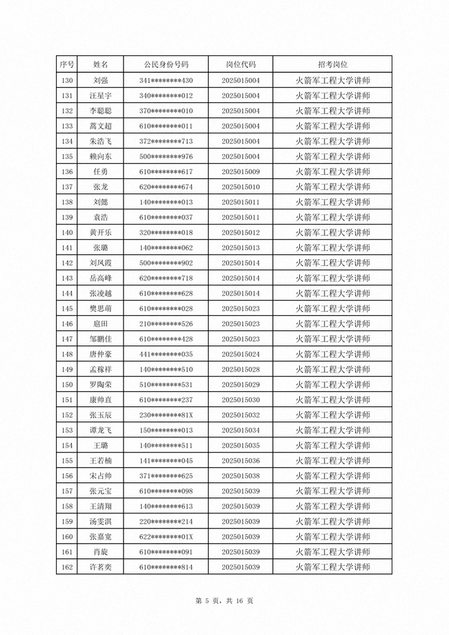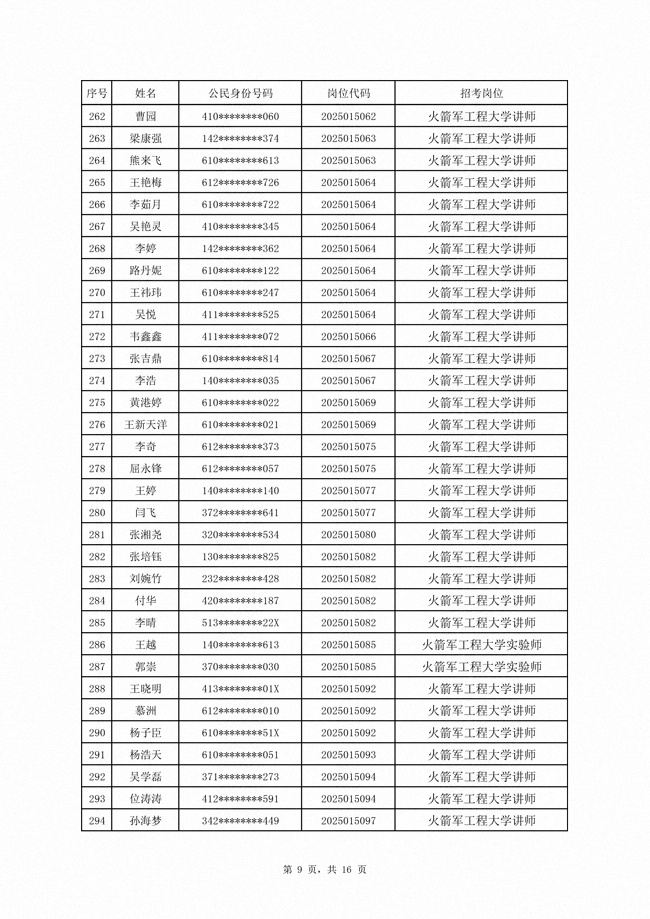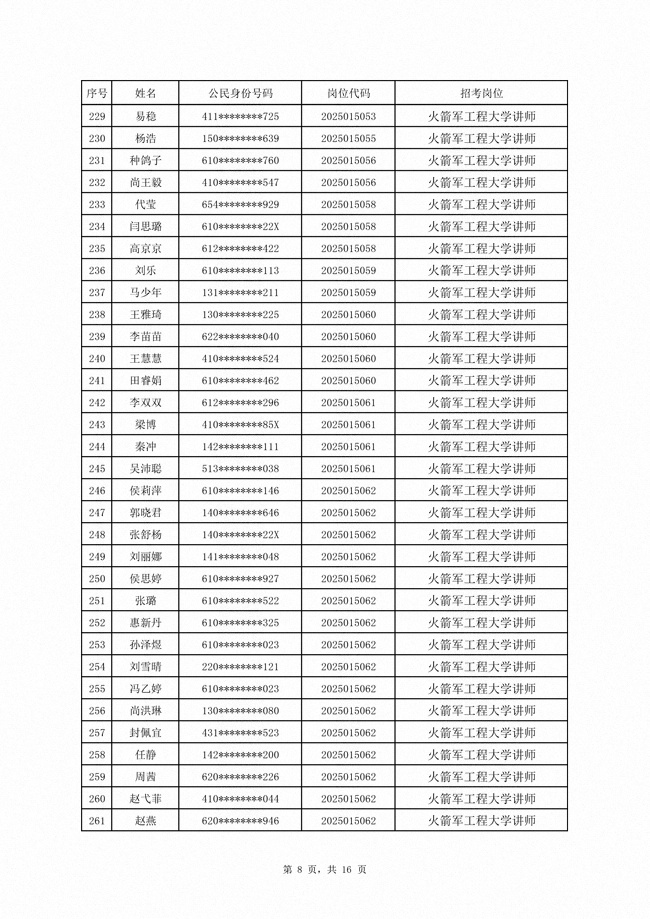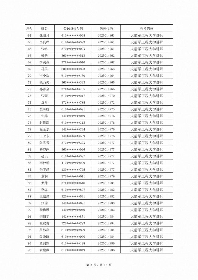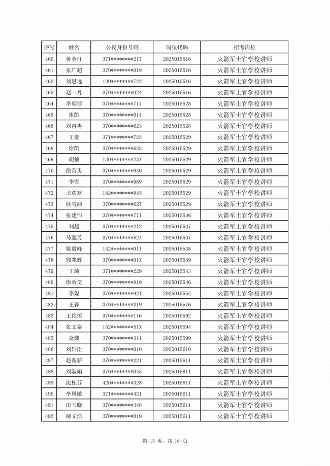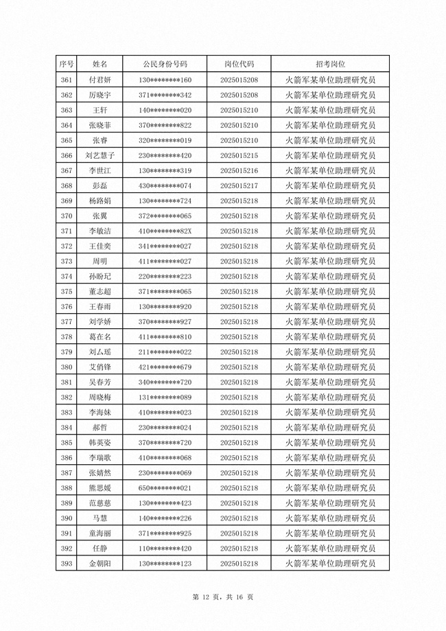 原文標(biāo)題:公布火箭軍2025年文職人員公開招考 首批免筆試直接參加面試人員名單