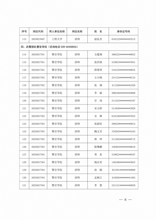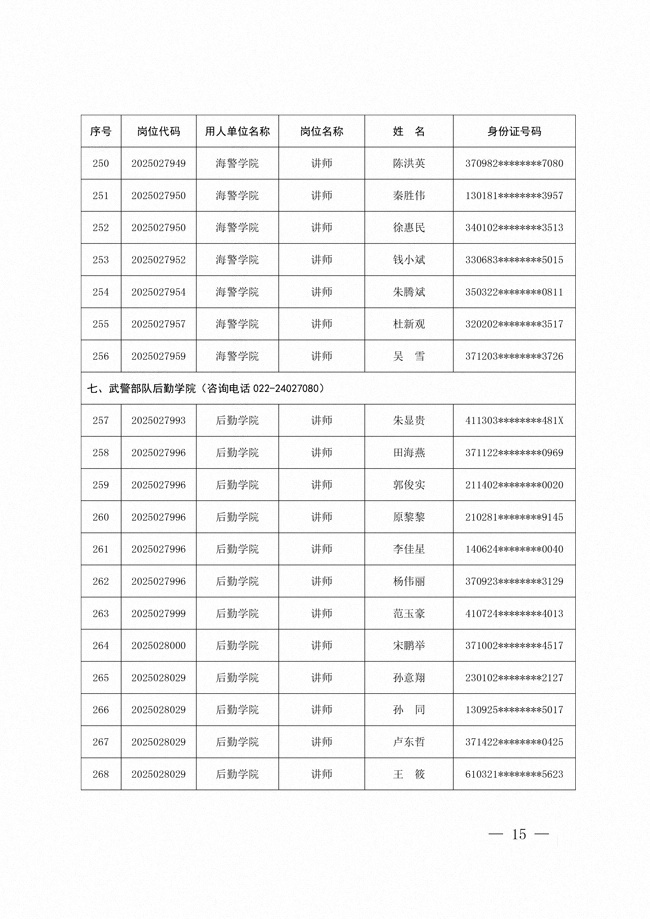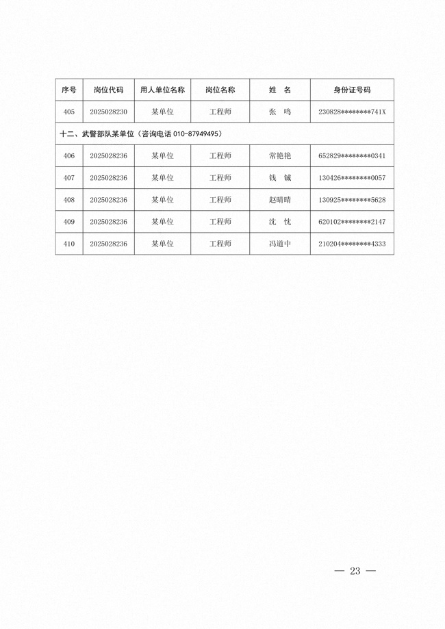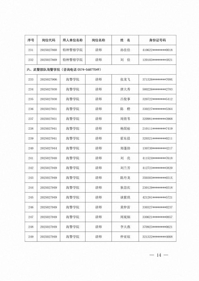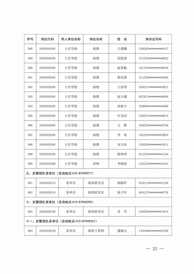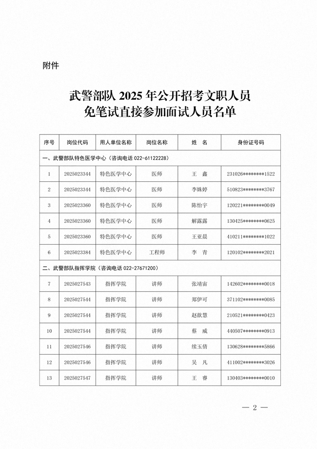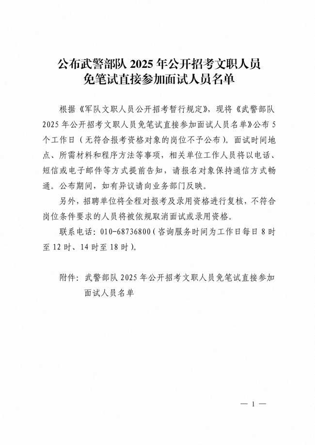 原文標(biāo)題:公布武警部隊(duì)2025年公開(kāi)招考文職人員免筆試直接參加面試人員名單