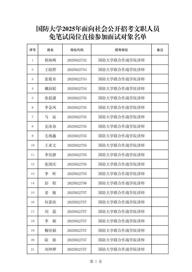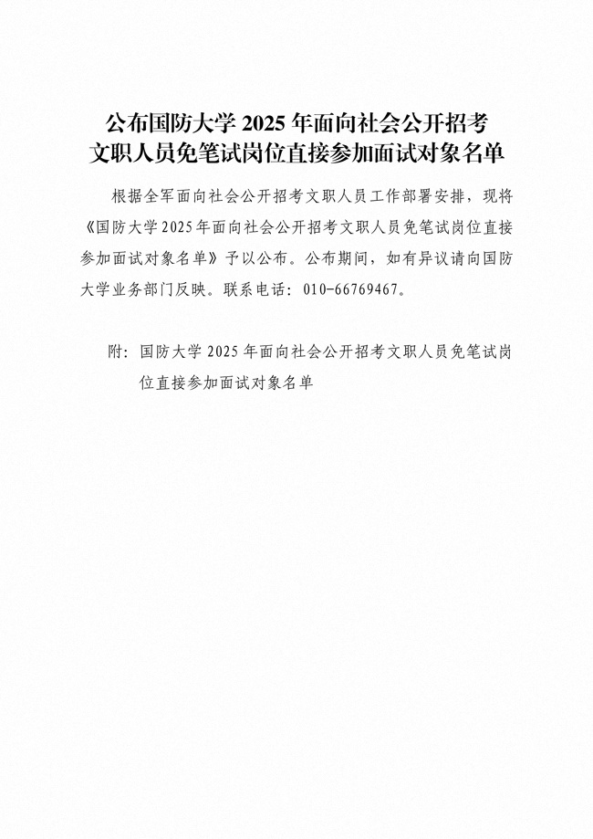 原文標(biāo)題:公布國(guó)防大學(xué)2025年面向社會(huì)公開招考 文職人員免筆試崗位直接參加面試對(duì)象名單