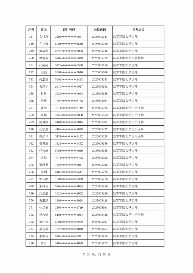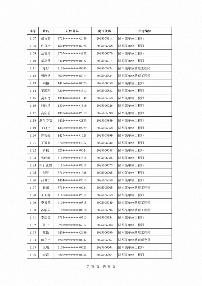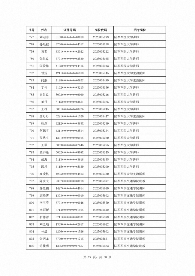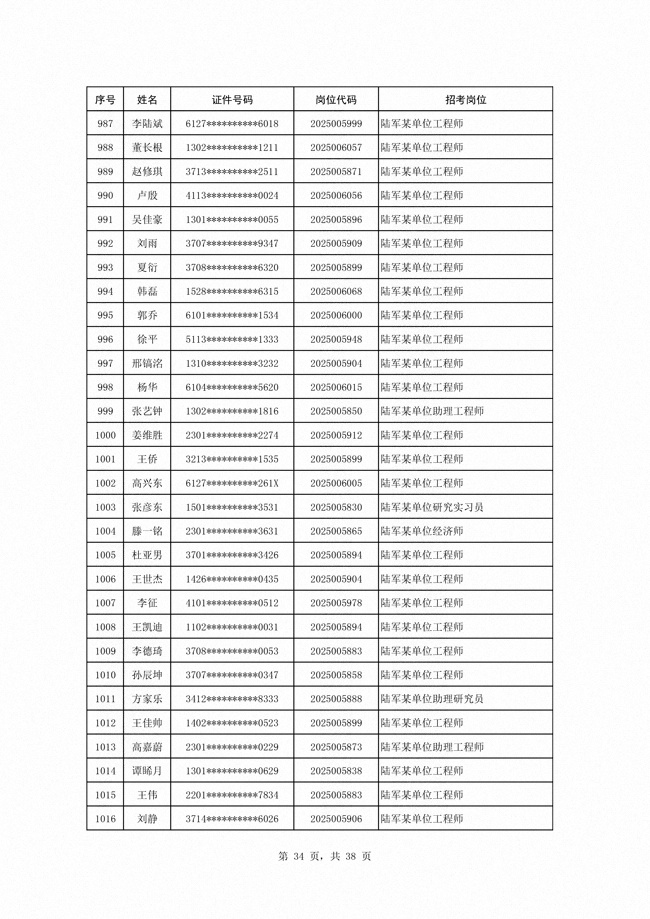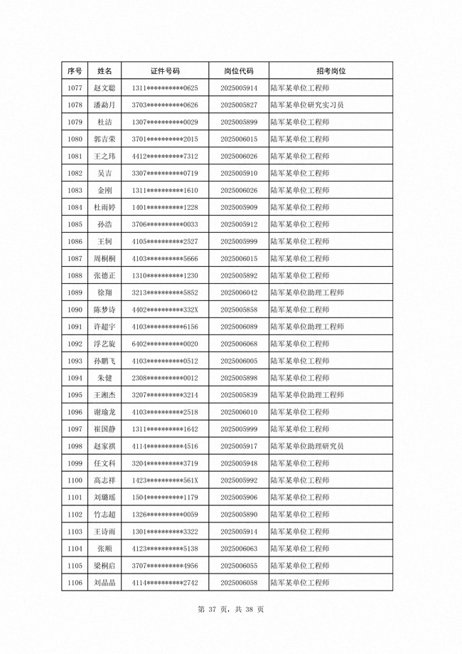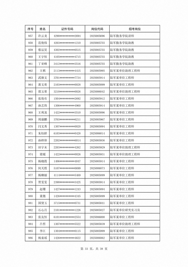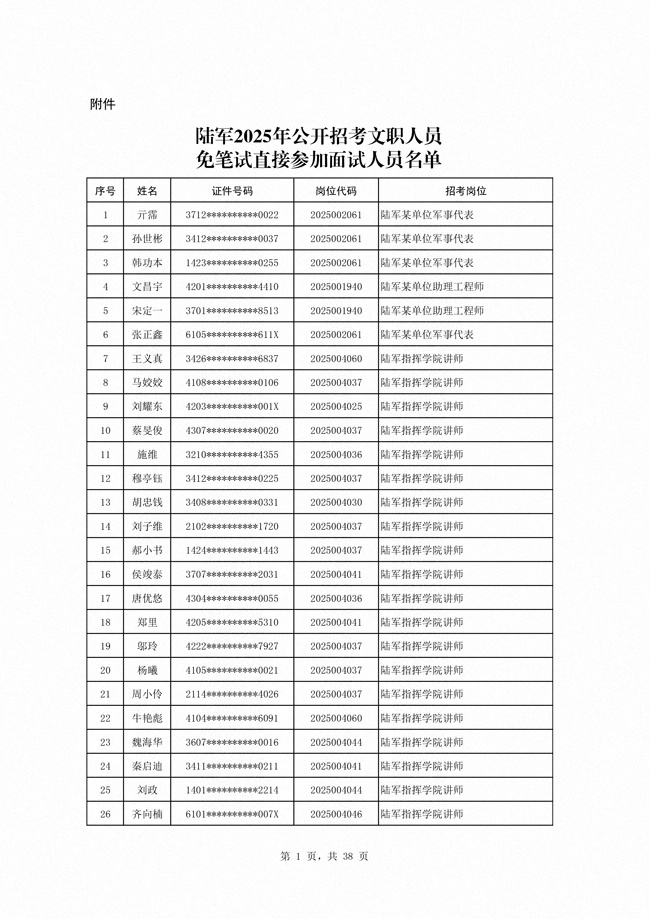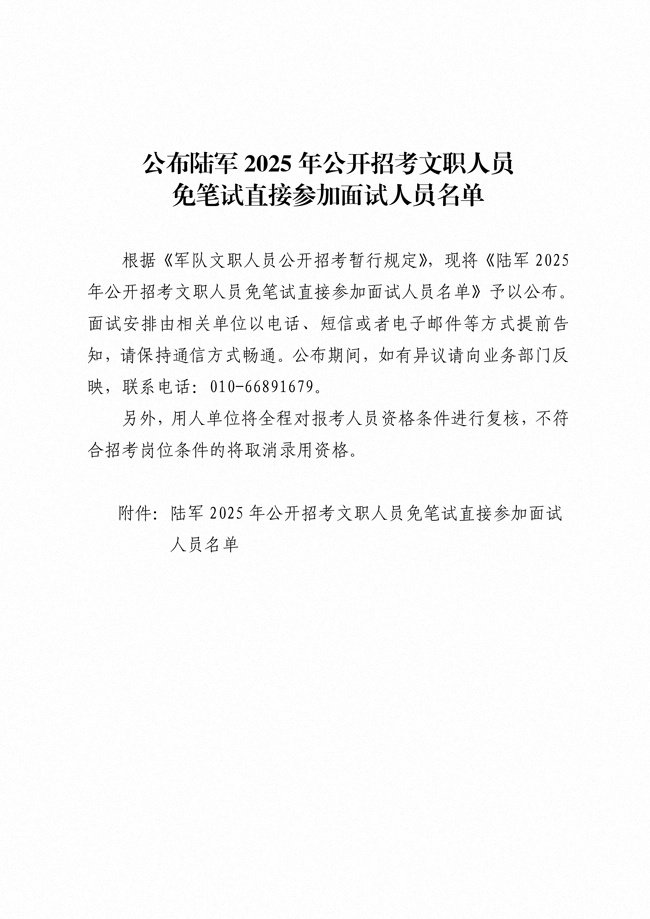 原文標(biāo)題:公布陸軍2025年公開(kāi)招考文職人員 免筆試直接參加面試人員名單