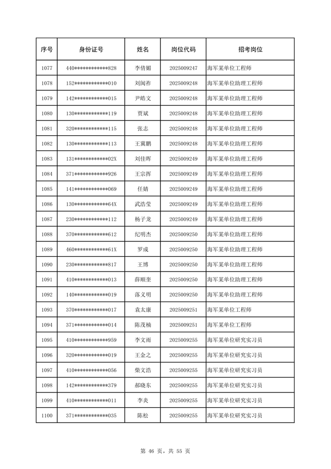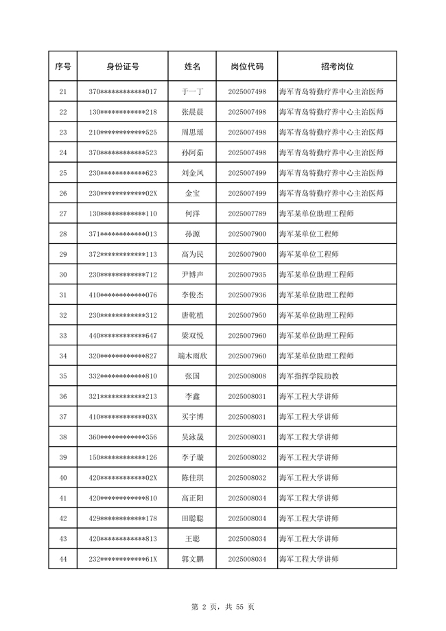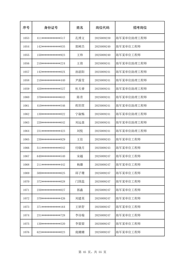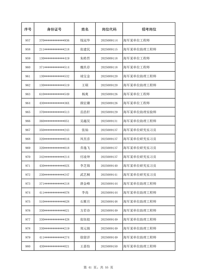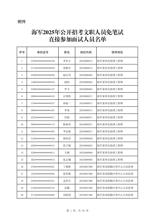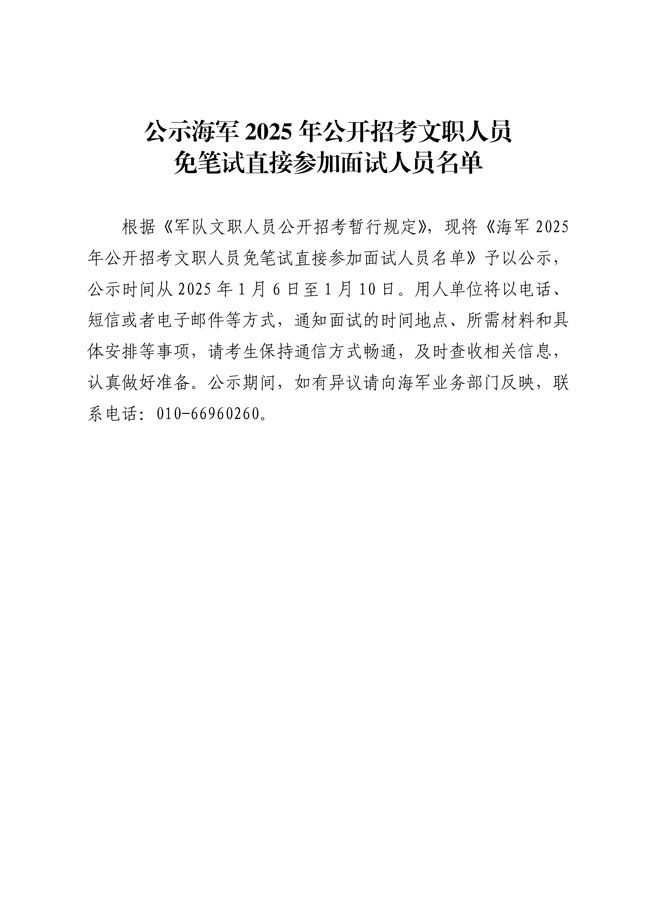 原文標(biāo)題:公示海軍2025年公開招考文職人員免筆試直接參加面試人員名單