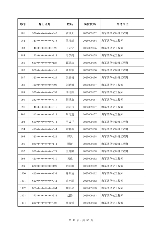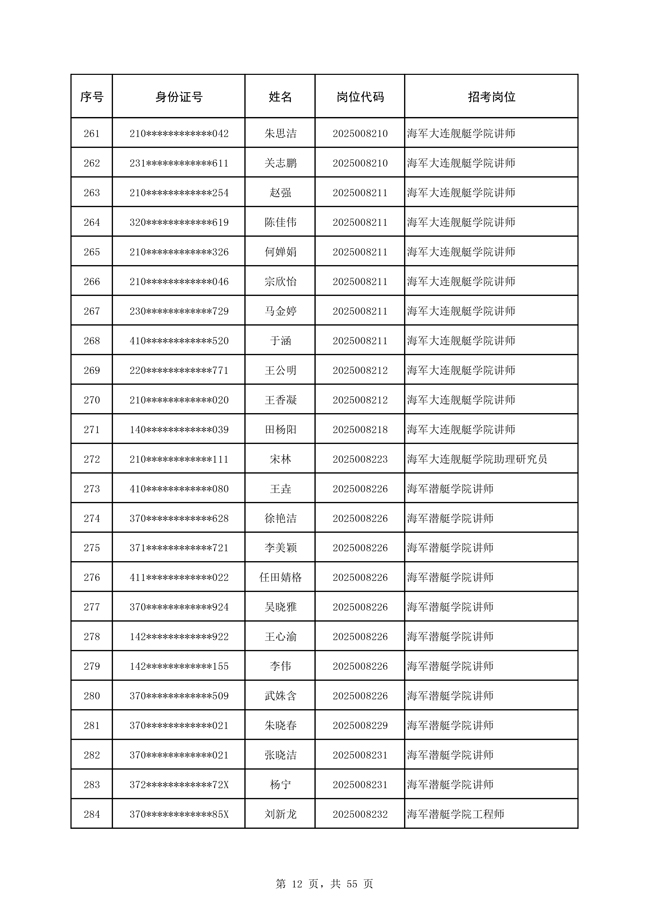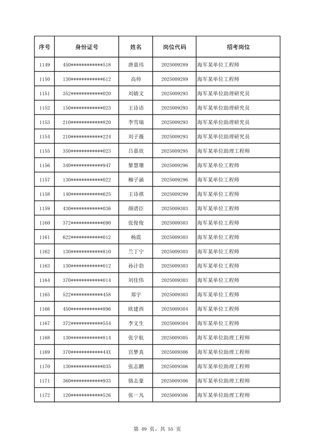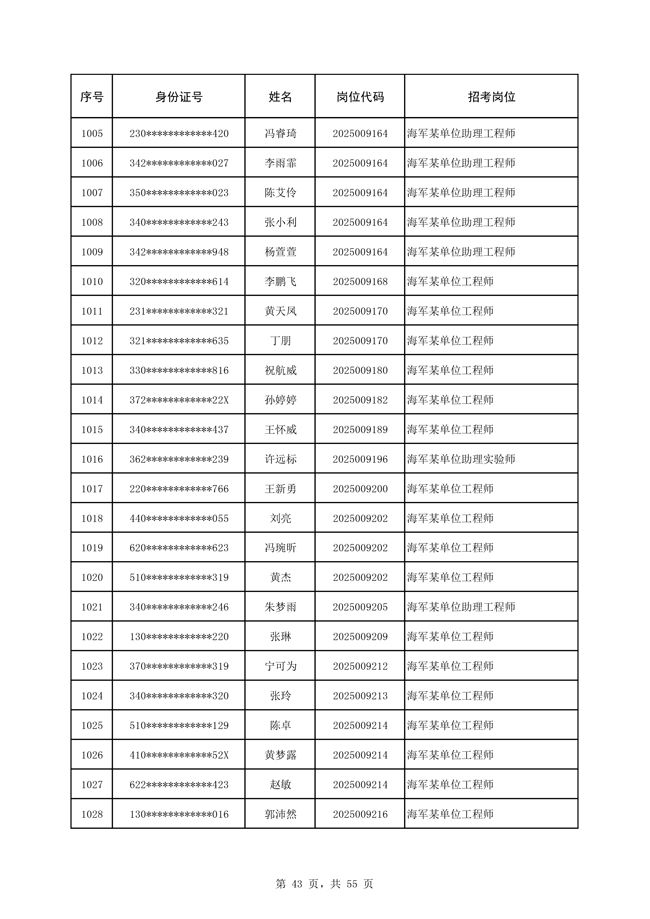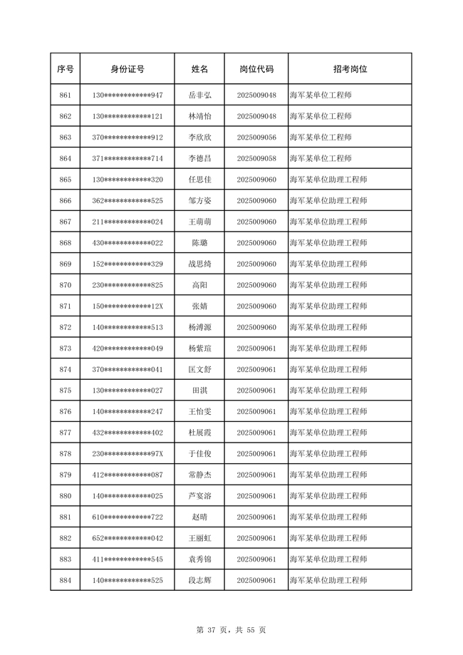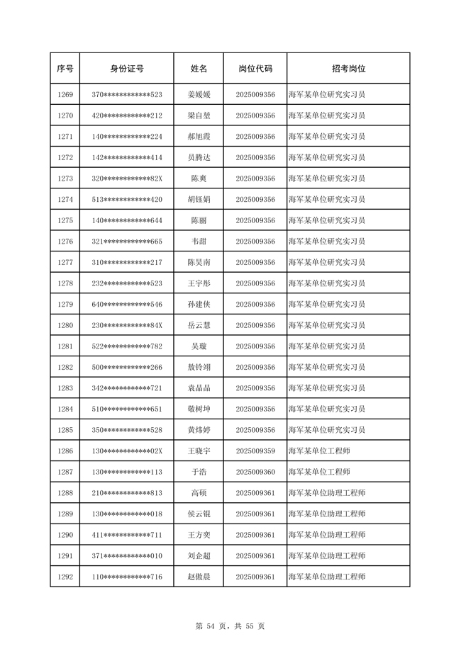 原文標(biāo)題:公示海軍2025年公開招考文職人員免筆試直接參加面試人員名單