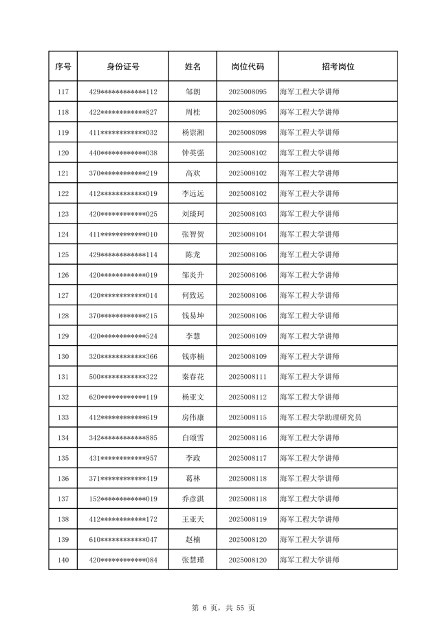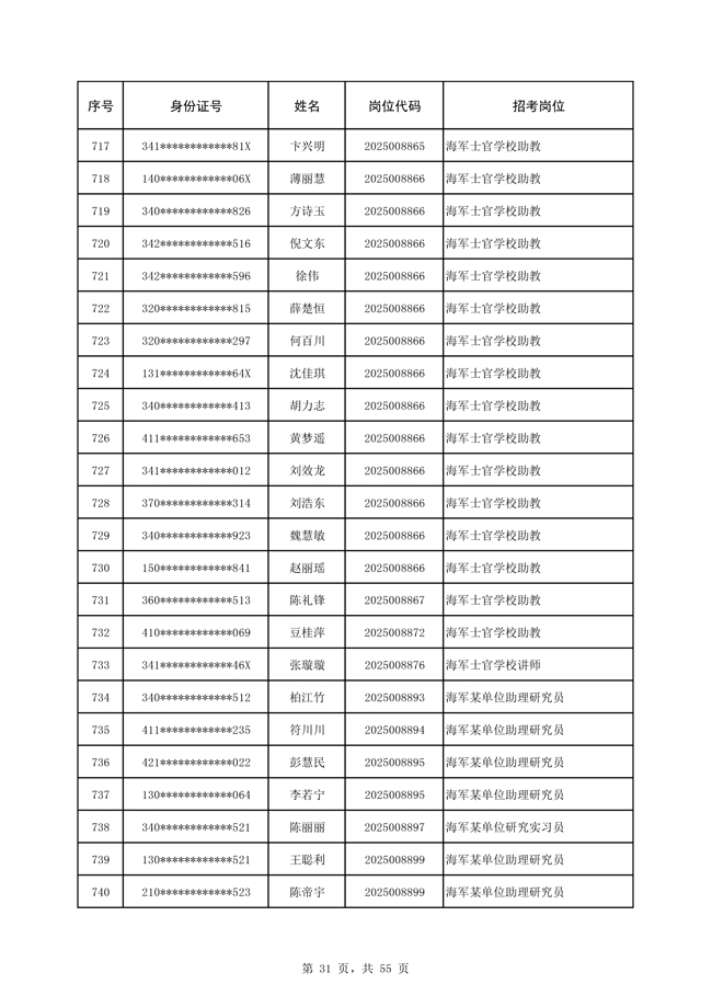 2025年武裝部文職人員擬錄用名單(含上岸分?jǐn)?shù)線) 2025-10-09
