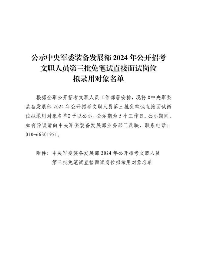 原文標(biāo)題:公示中央軍委裝備發(fā)展部2024年公開招考文職人員第三批免筆試直接面試崗位擬錄用對象名單